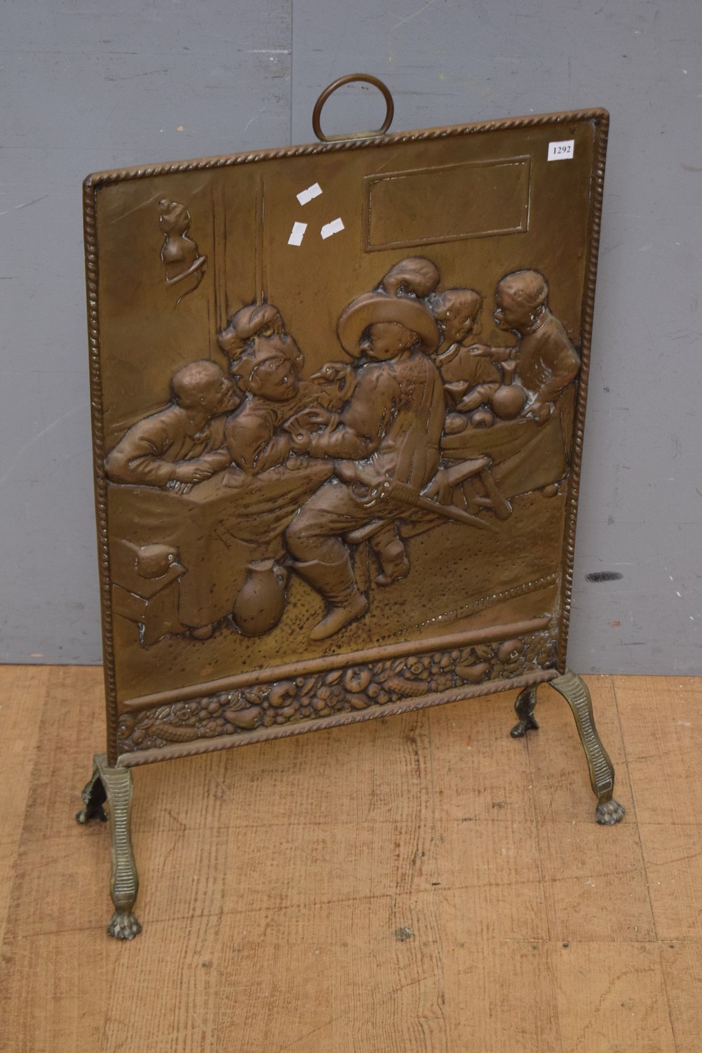 A PRESSED BRASS FIRE SCREEN (82H x 56W x 20D CM) (LEONARD JOEL DELIVERY SIZE: MEDIUM)