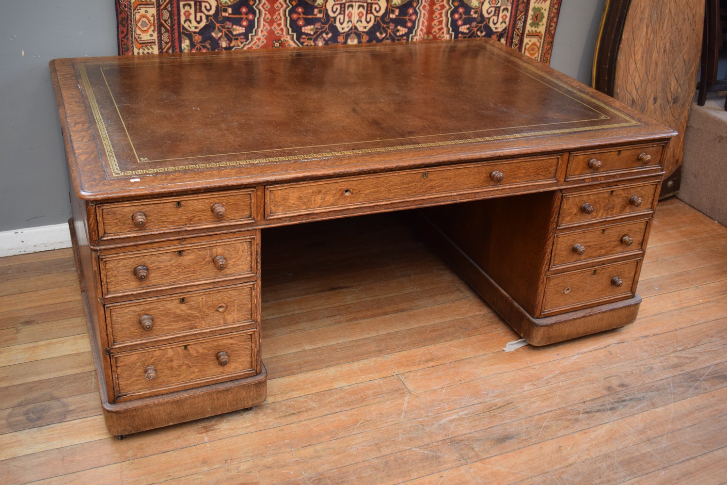 A LARGE DOUBLE PEDESTAL PARTNERS DESK (A/F) (PLEASE NOTE THIS HEAVY ITEM MUST BE REMOVED BY CARRIERS AT THE CUSTOMER'S EXPENSE. LEONARD JOEL STAFF CANNOT ASSIST CARRYING THIS ITEM) (X-LARGE ITEM)