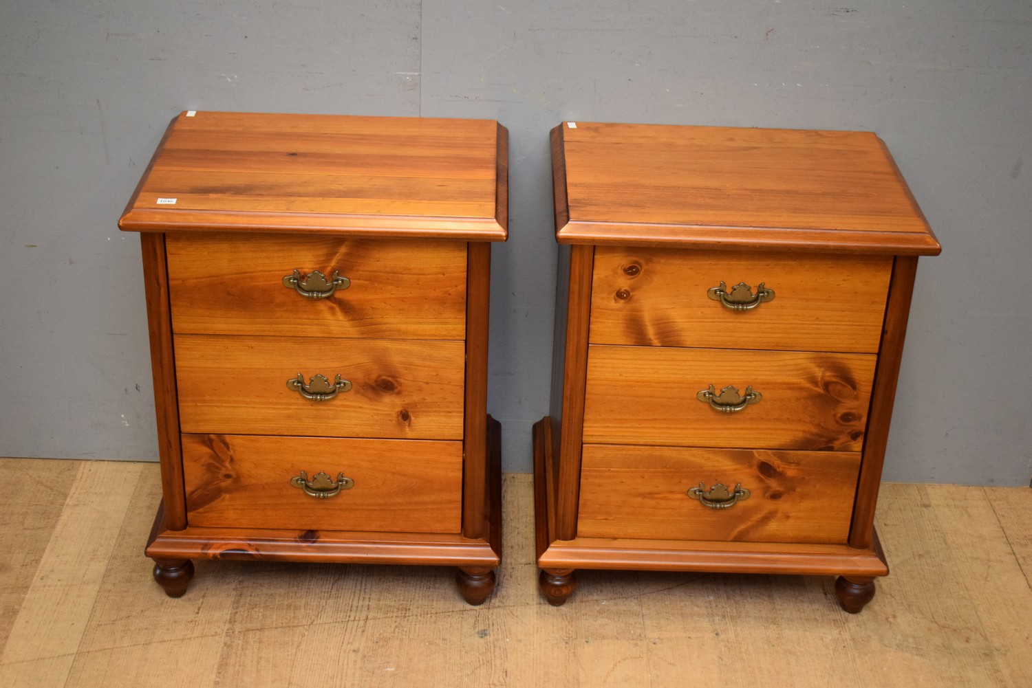 A PAIR OF THREE DRAWER TIMBER BEDSIDE CHESTS (67H x 54W x 40D CM) (LEONARD JOEL DELIVERY SIZE: LARGE)