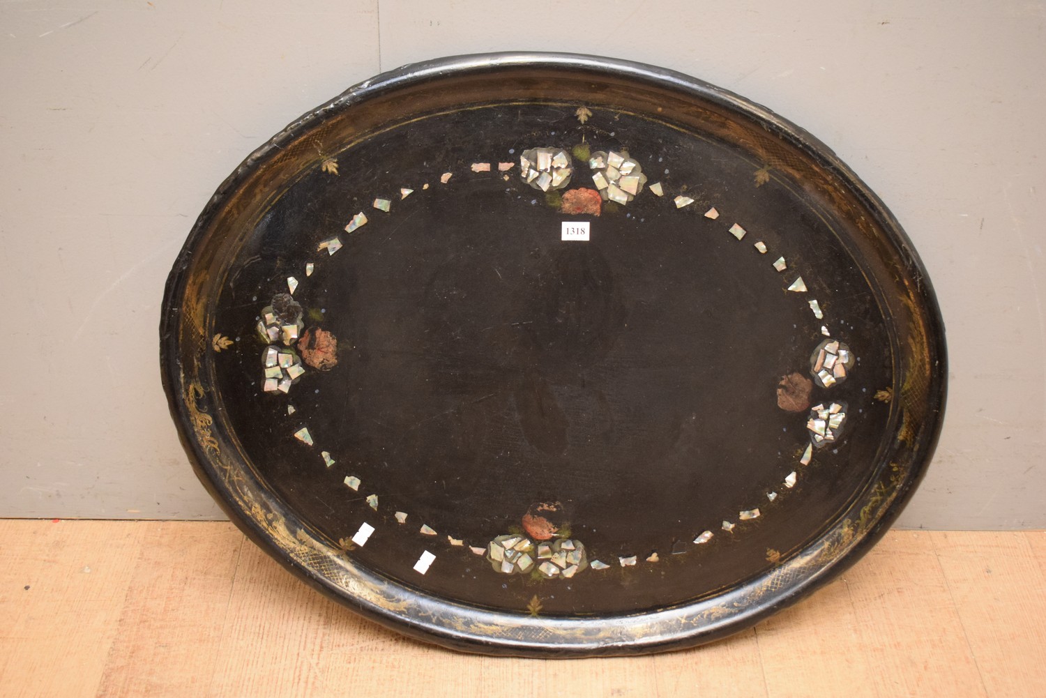 A PAPER MACHE TRAY WITH MOTHER OF PEARL INLAY (59H x 73W CM) (LEONARD JOEL DELIVERY SIZE: MEDIUM)