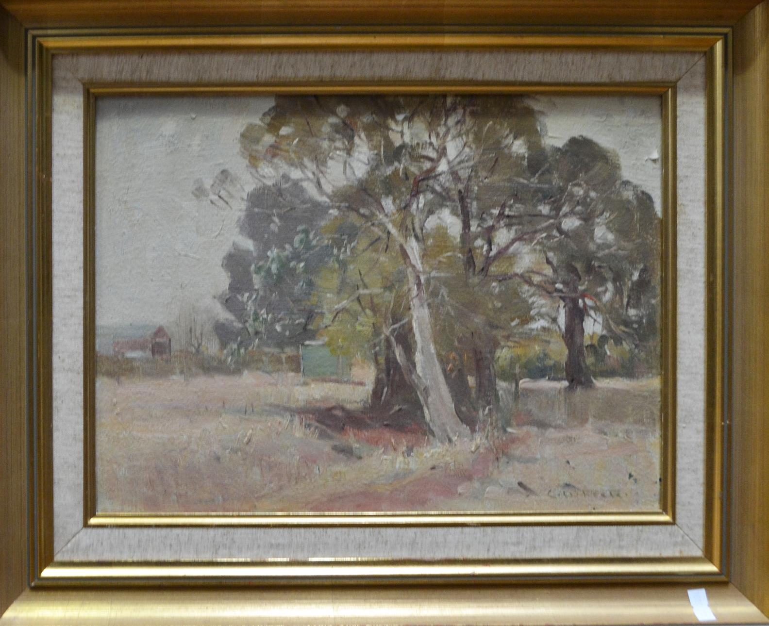 CHARLES WHEELER, STILL MORNING, OIL ON BOARD, 28.5 X 38.5CM, FRAMED: 45 X 55CM, CONDITION: SOME MINOR PIGMENT LOSSES THROUGHOUT, ESPECIALLY UPPER RIGHT AND LOWER RIGHT, SOME MINOR DAMAGE TO THE FRAME. LEONARD JOEL DELIVERY SIZE: LARGE