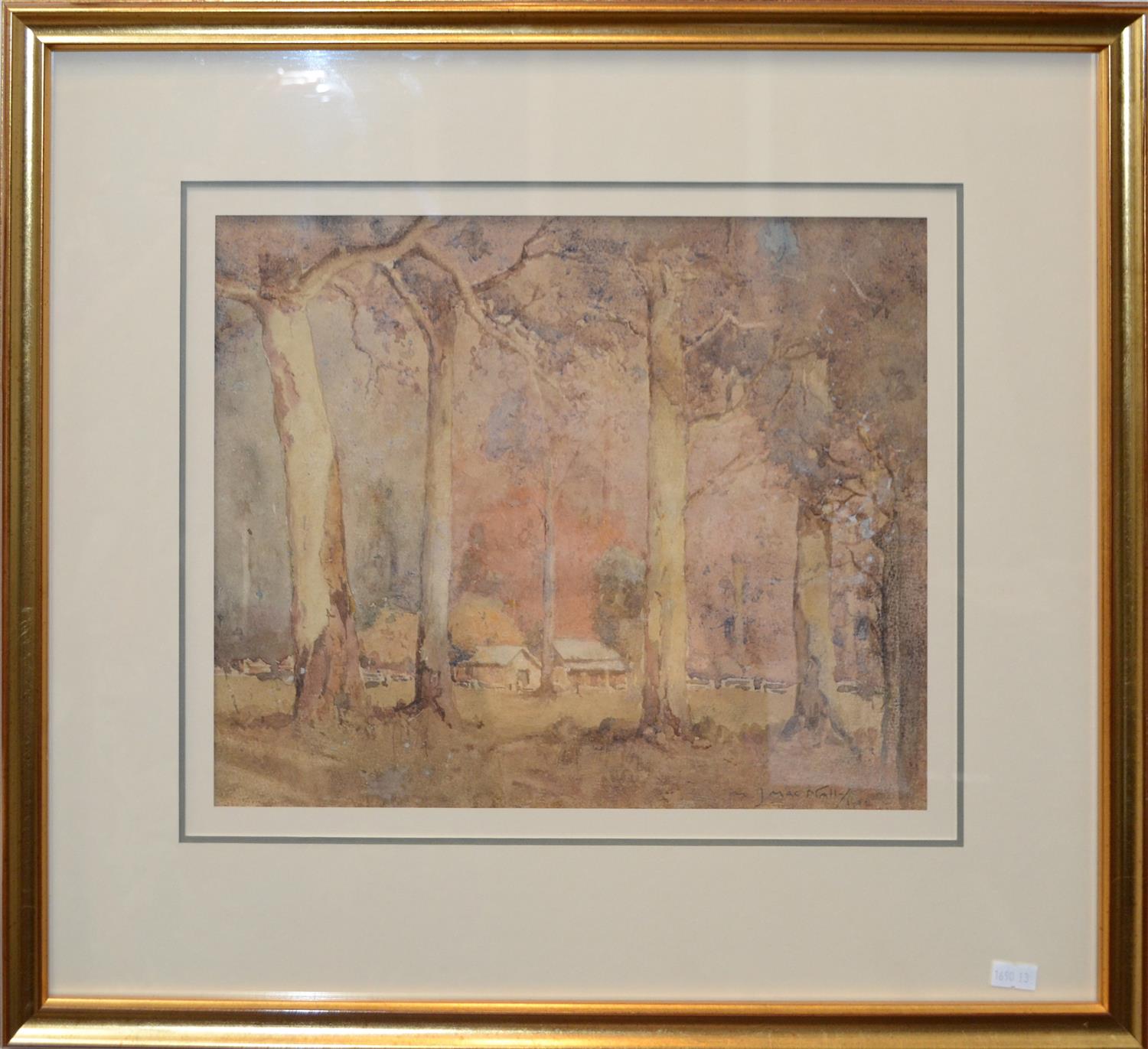 M. J. MACNALLY, COUNTRY HOMESTEAD 1901, WATERCOLOUR, 29 X 35CM, FRAMED: 51 X 56CM, VERY GOOD CONDITION, CONSISTENT WITH AGE, LEONARD JOEL DELIVERY SIZE: SMALL