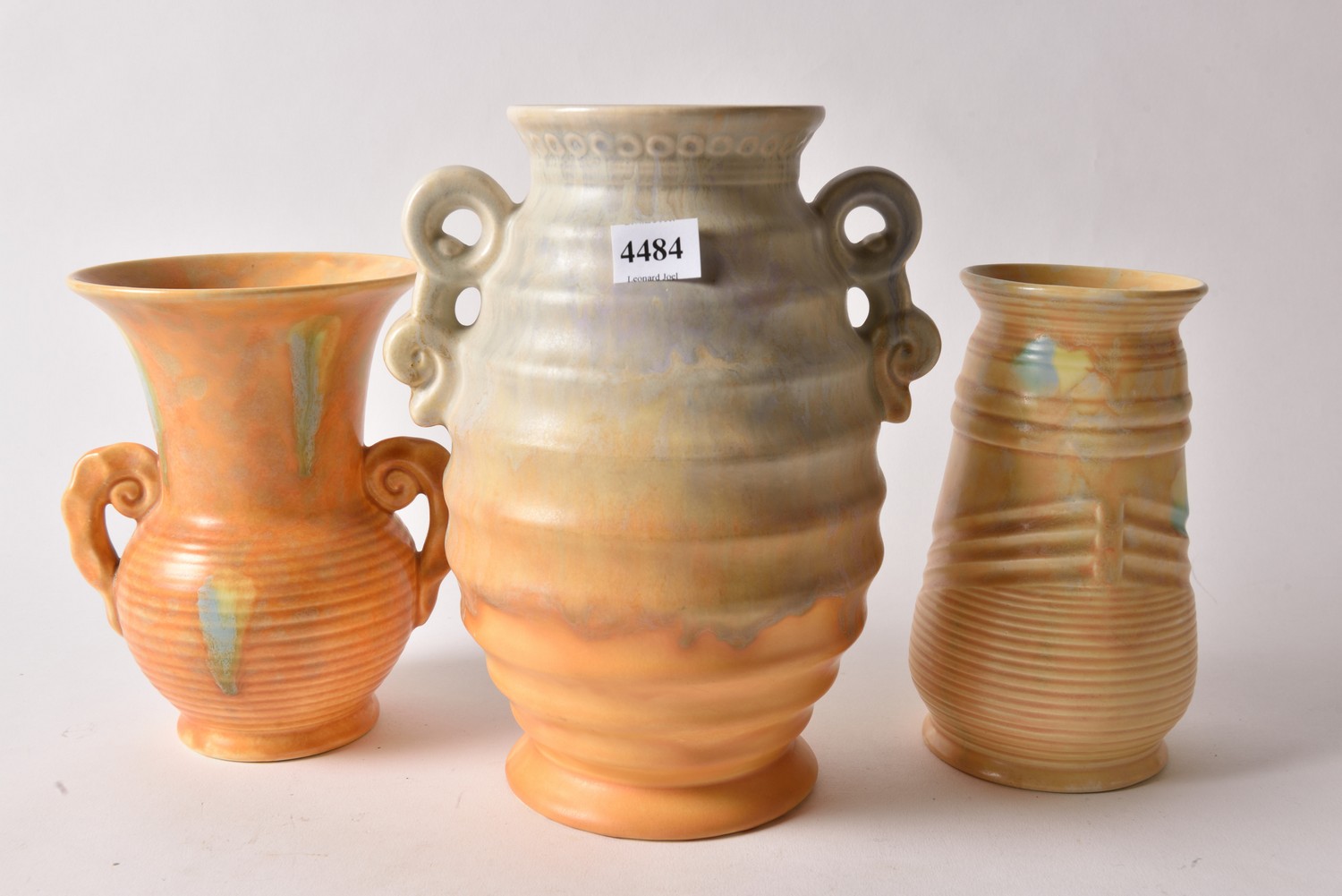 THREE BESWICK VASES IN SHADES OF ORANGE (22 CM H), LEONARD JOEL LOCAL DELIVERY SIZE: SMALL