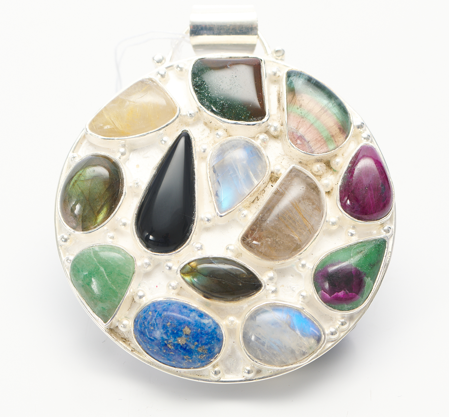 A MULTI GEM SET PENDANT IN STERLING SILVER, DIAMETER 65MM