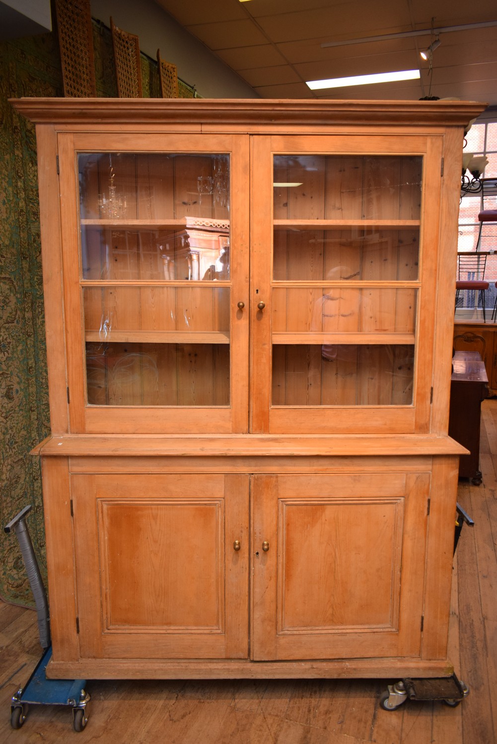 A LARGE PINE CABINET (213H x 160W x 44D CM) (A/F) (PLEASE NOTE THIS HEAVY ITEM MUST BE REMOVED BY CARRIERS AT THE CUSTOMER'S EXPENSE. LEONARD JOEL STAFF CANNOT ASSIST CARRYING THIS ITEM) (X-LARGE ITEM)