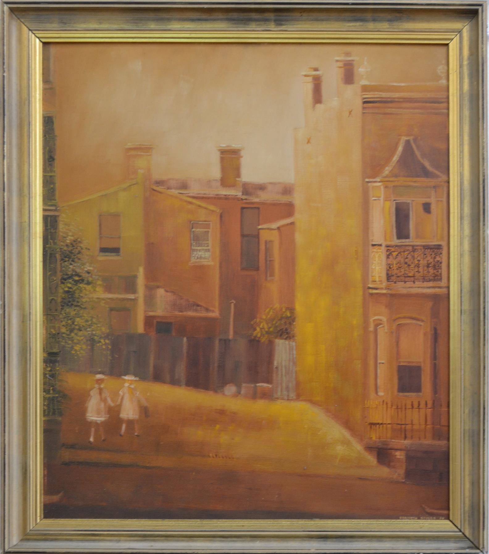 KENNETH STYLES, STREET SCENE, OIL ON BOARD, 70 X 60CM