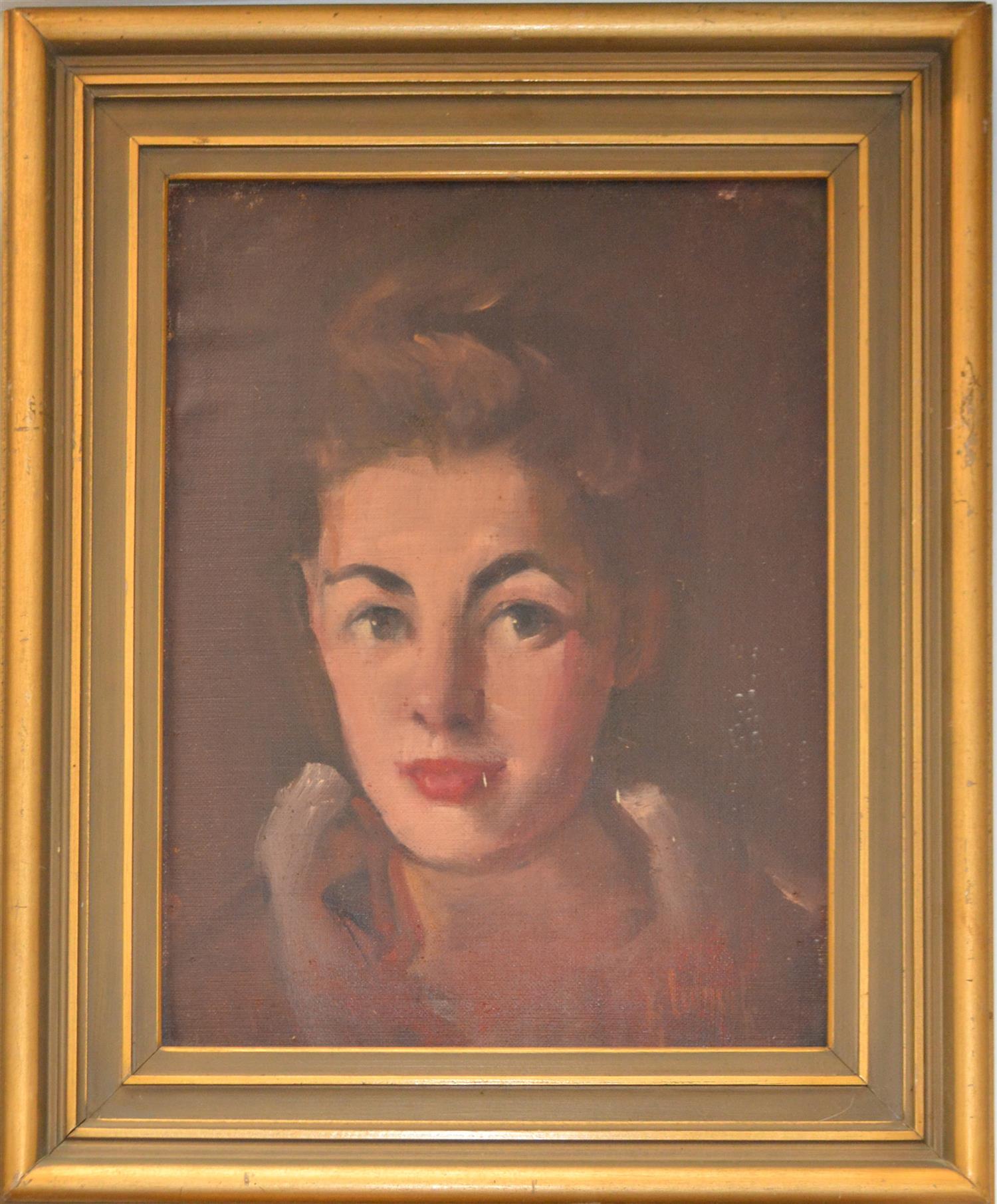 G. BROWN, PORTRAIT OF A YOUNG WOMAN, OIL ON CANVASBOARD, 38 X 29CM, LEONARD JOEL DELIVERY SIZE: SMALL, FRAME SIZE: 51 X 41CM