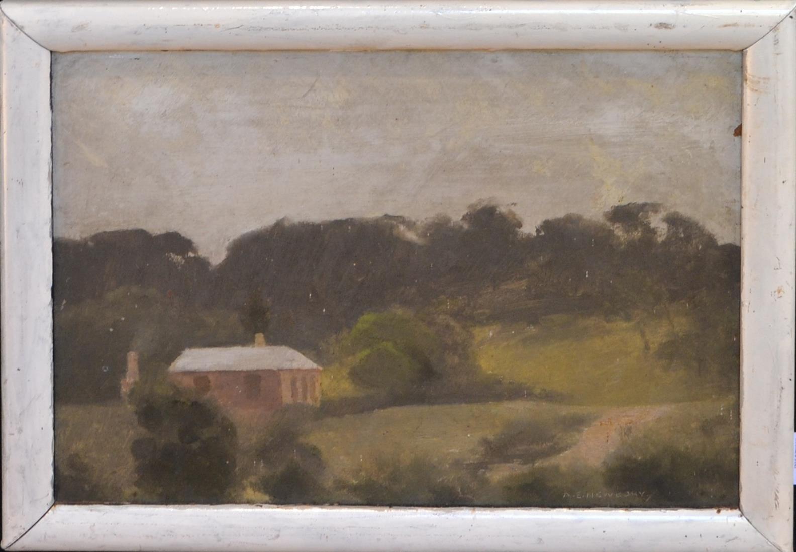 A. E. NEWBURY, HOMESTEAD, OIL ON MAISONITE, 22 X 29.5CM, (THE COLLECTION OF INGE AND GRAHAME KING)