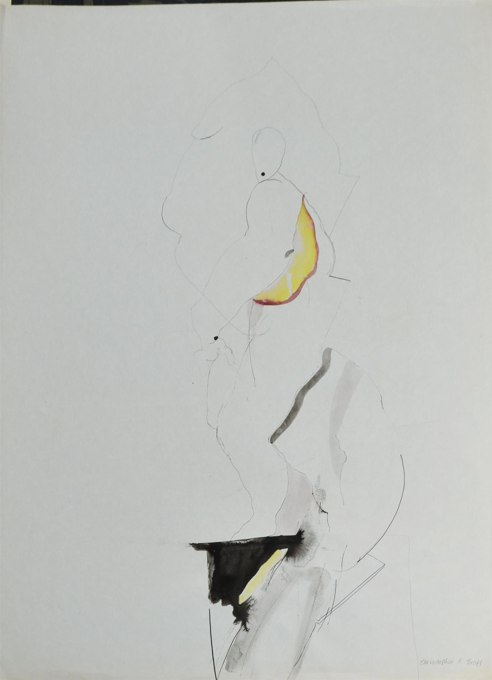 CHRISTOPHER R. CROFT, UNTITLED (FIGURE STUDY), PEN AND INK WASH ON PAPER, 76.5 X 56.5CM, (THE COLLECTION OF INGE AND GRAHAME KING)