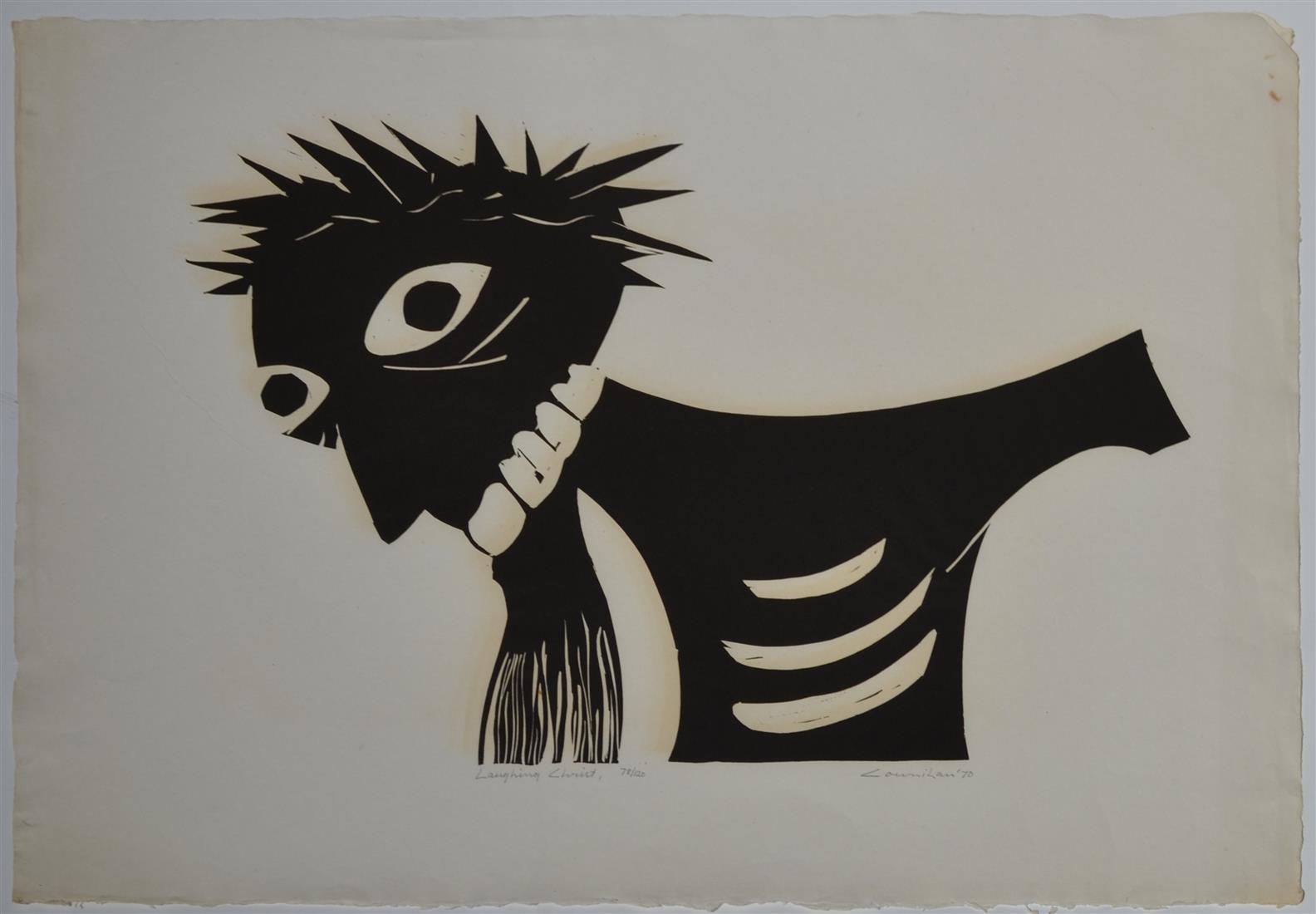 NOEL COUNIHAN, LAUGHING CHRIST 1970, SCREENPRINT 78/120, 57.5 X 80CM, (THE COLLECTION OF INGE AND GRAHAME KING)