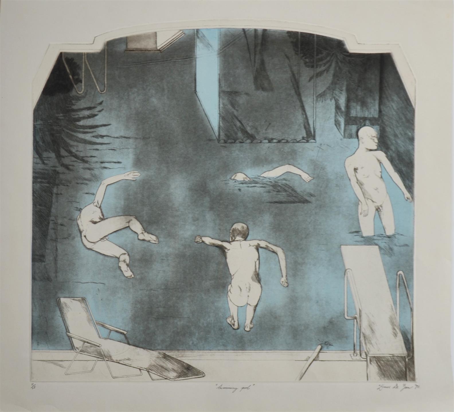 ERMES DE ZAN, SWIMMING POOL 1973, ETCHING AND AQUATINT 11/15, 56 X 65CM, (THE COLLECTION OF INGE AND GRAHAME KING)