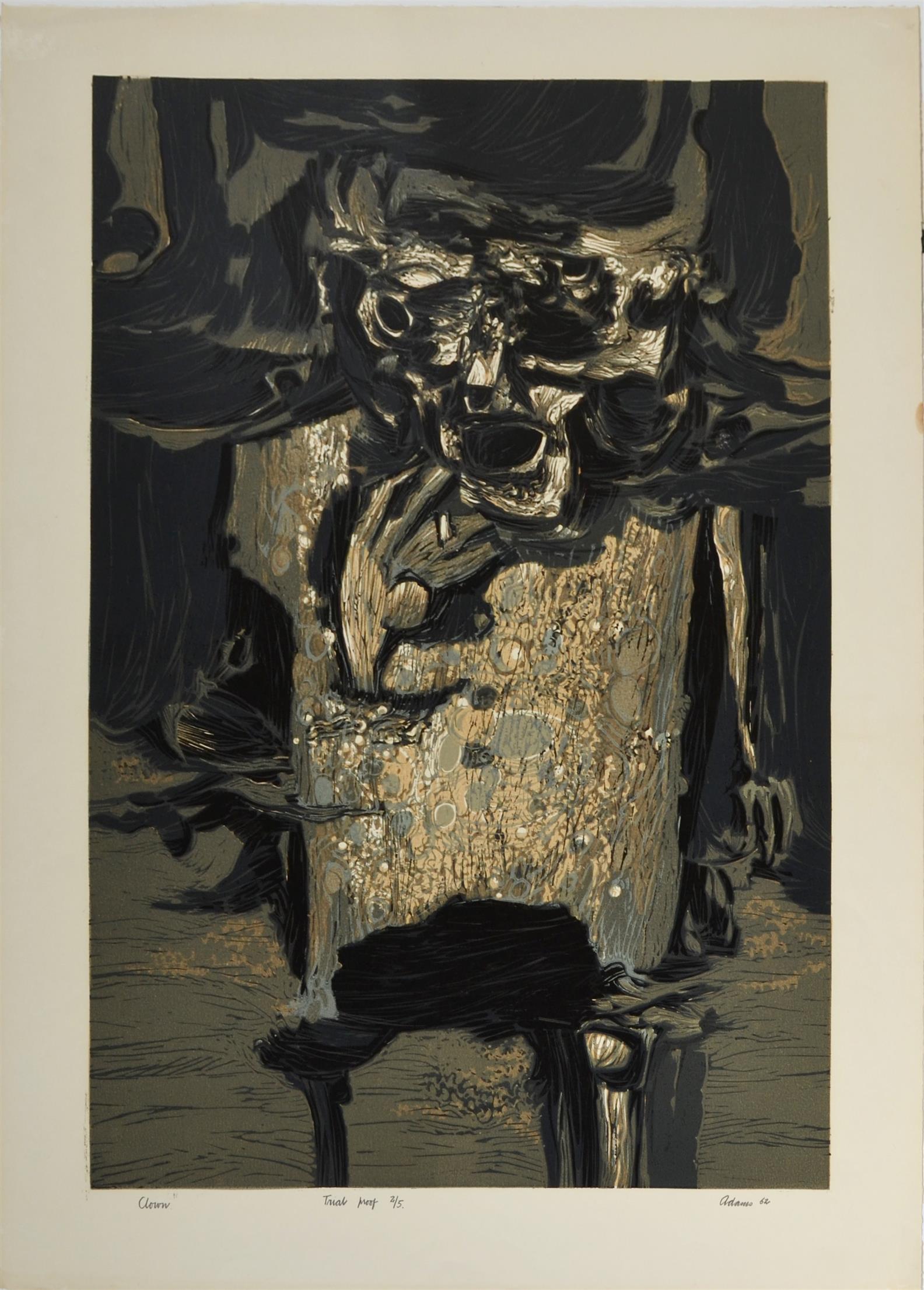 TATE ADAMS, CLOWN 1962, LINOCUT 2/5, 76 X 51CM, (THE COLLECTION OF INGE AND GRAHAME KING)