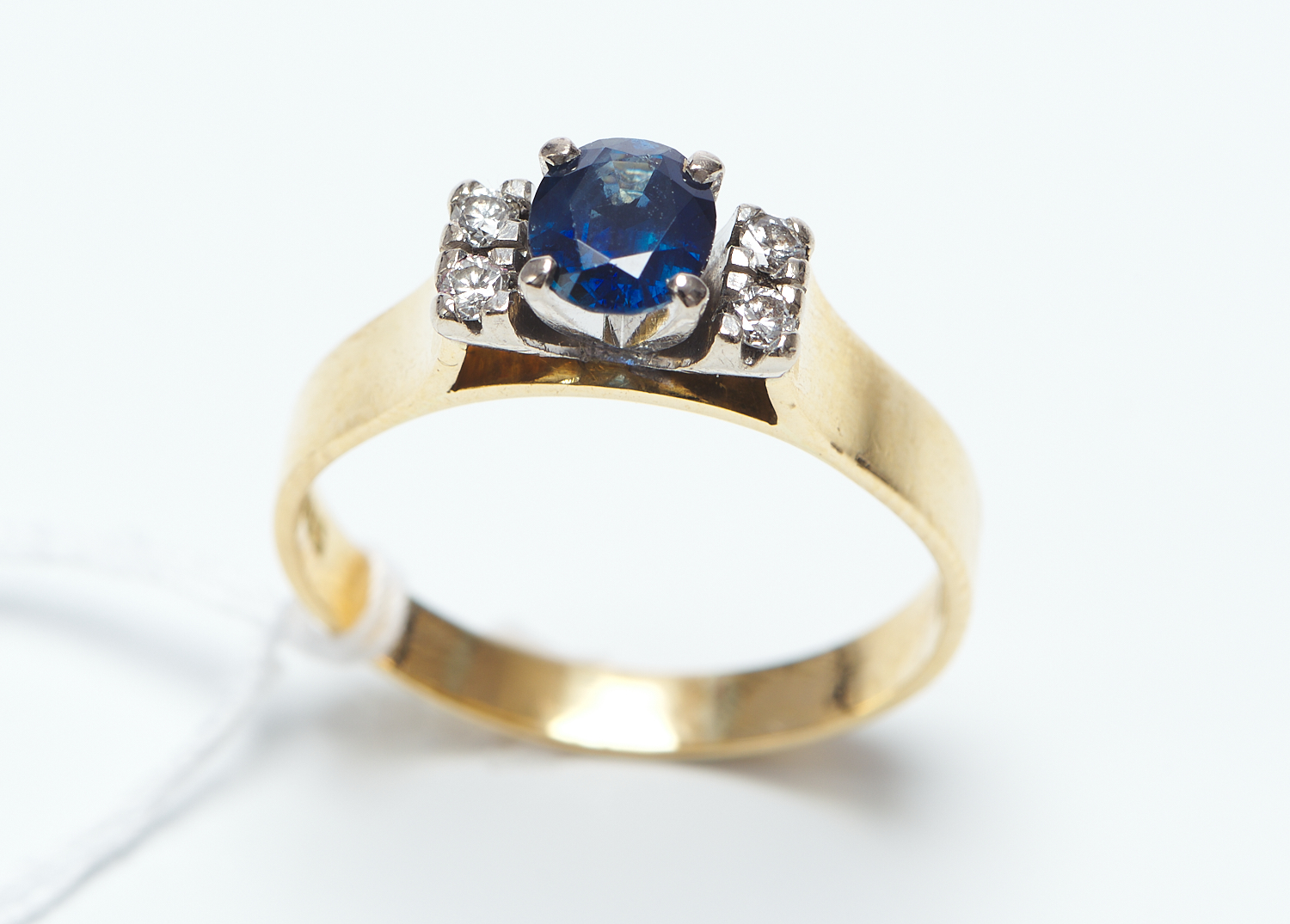 A SAPPHIRE AND DIAMOND DRESS RING IN 18CT GOLD, SIZE U, 5.3GMS