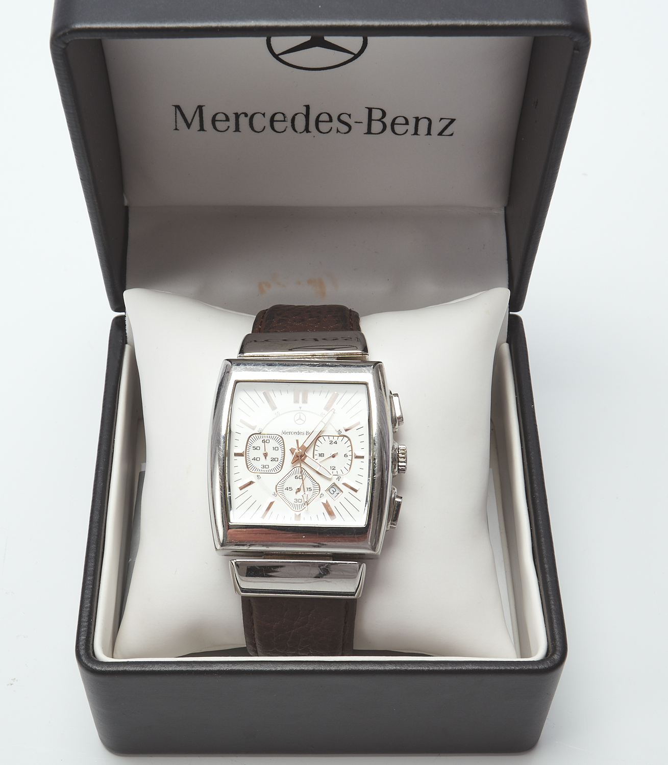 A QUARTZ CHRONO GRAPH WRISTWATCH BY MERCEDES BENZ WITH BOX AND PAPERS