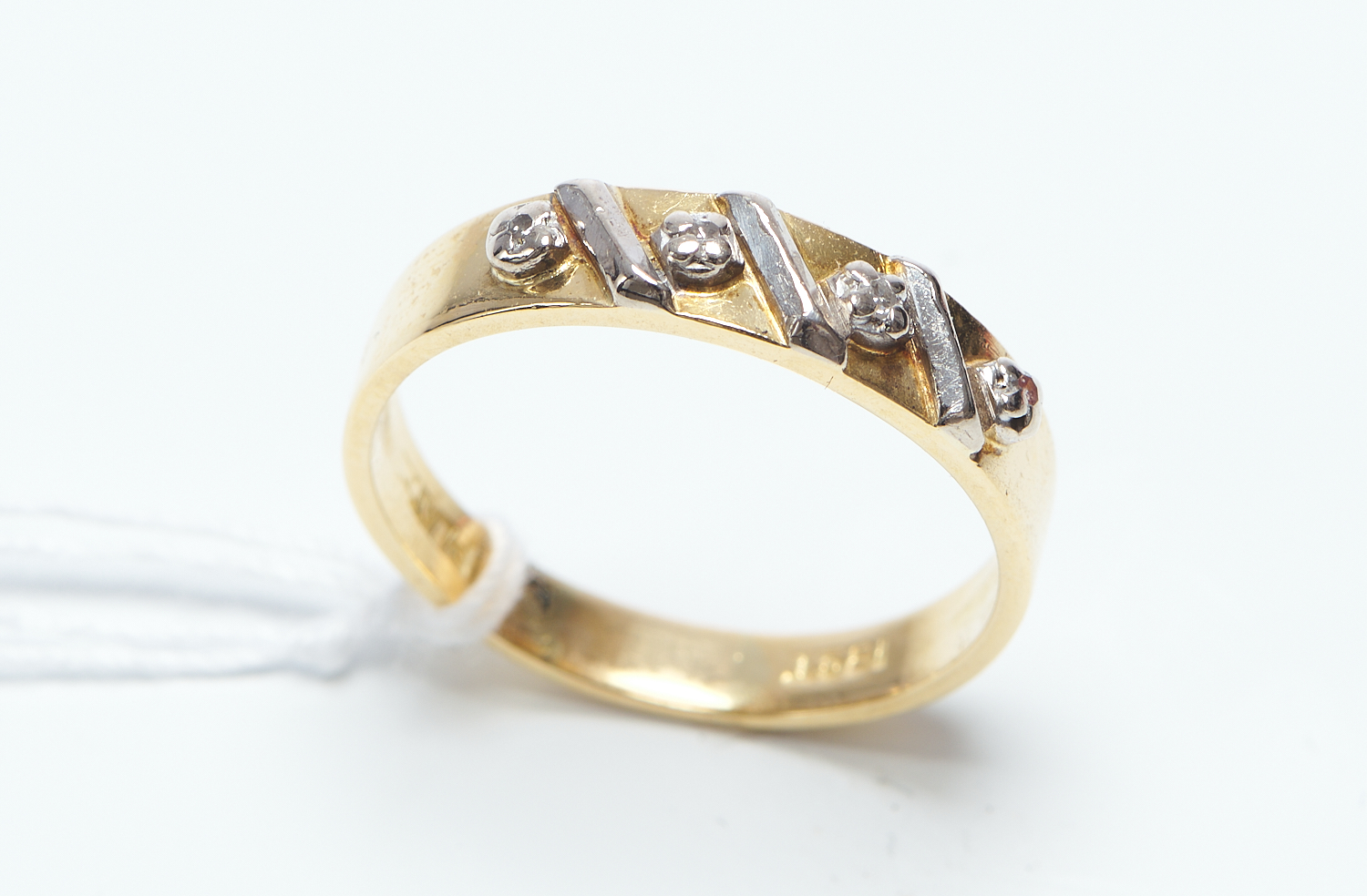 A DIAMOND BAND IN 9CT GOLD, SIZE P, 3.3GMS