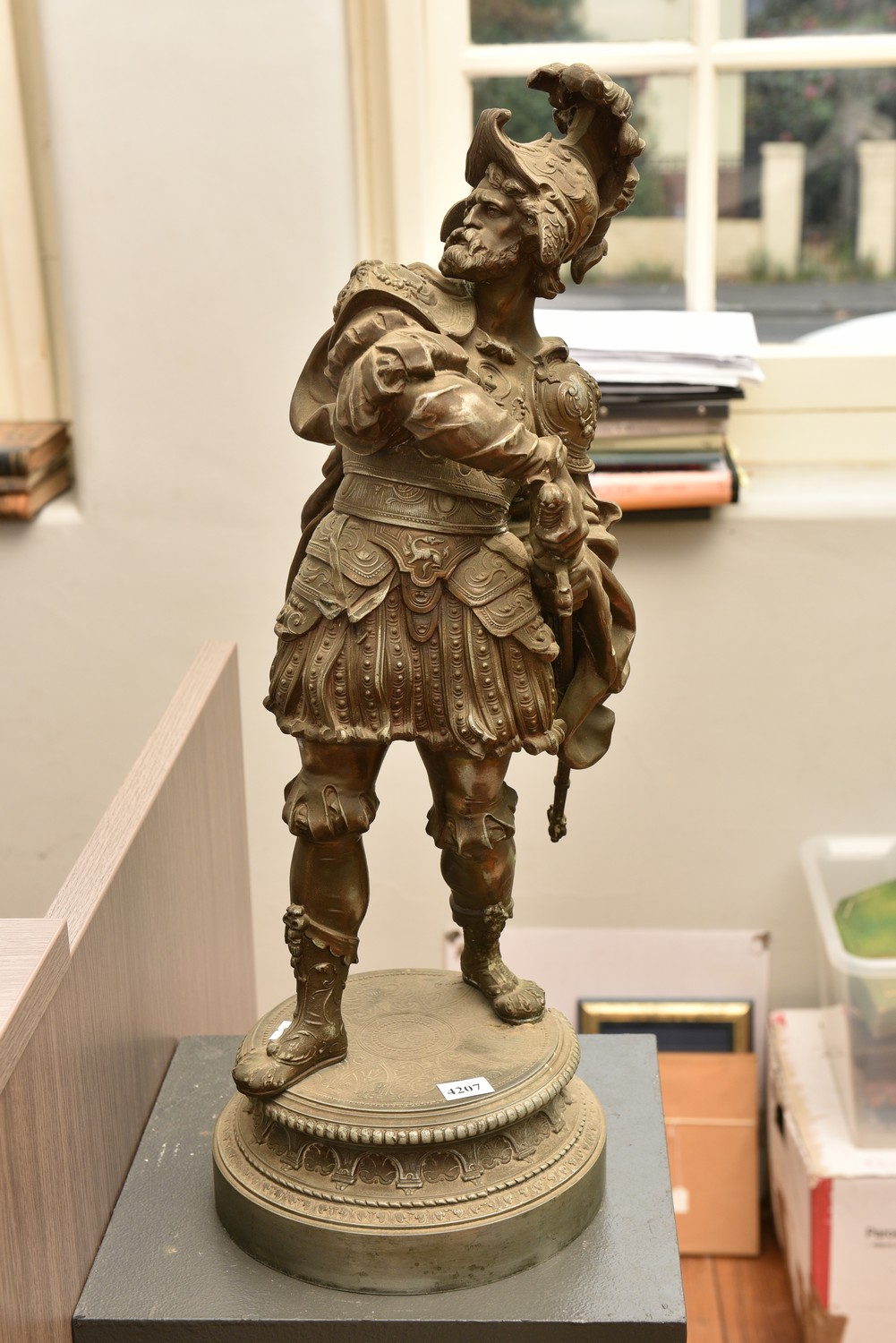 A SPELTER FIGURAL MULE POST ORNAMENT (LOSSES TO BASE) (58 CM H), LEONARD JOEL LOCAL DELIVERY SIZE: SMALL
