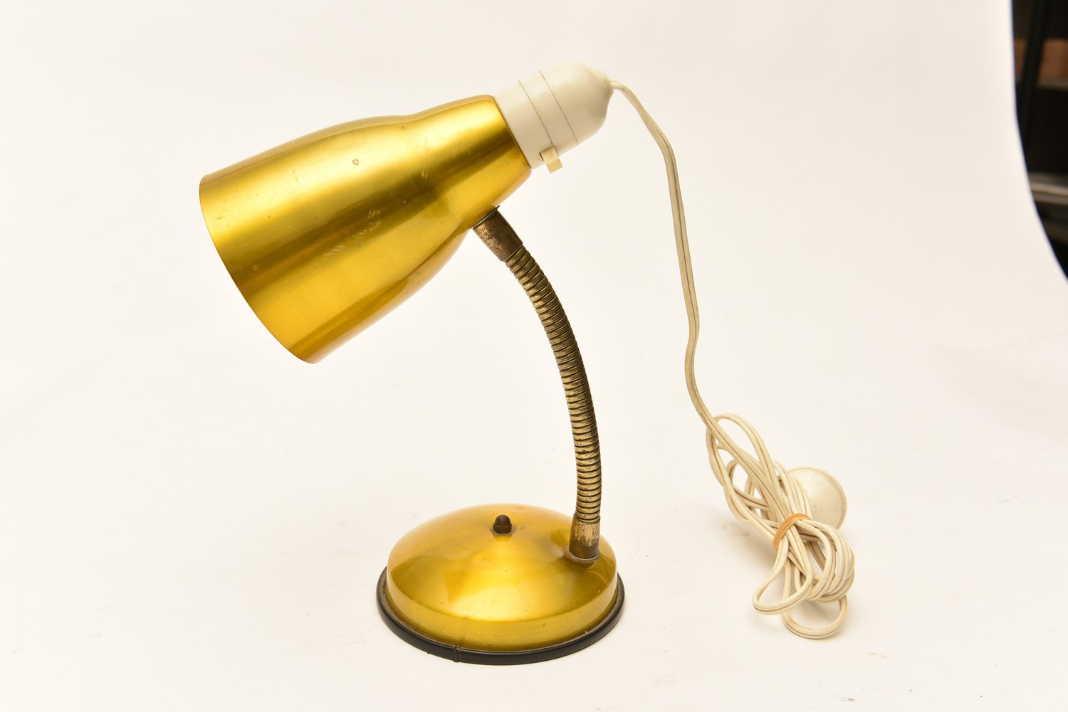 A YELLOW ANODISED ALUMINIUM DESK LAMP (27 CM H), LEONARD JOEL LOCAL DELIVERY SIZE: SMALL