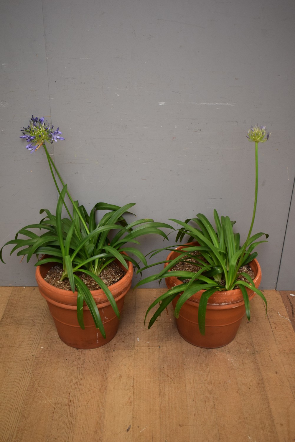 TWO POTTED AGAPANTHAS IN VINTAGE NORTHCOTE POTS (36H x 42D CM) (PLEASE NOTE THIS HEAVY ITEM MUST BE REMOVED BY CARRIERS AT THE CUSTOMER'S EXPENSE. LEONARD JOEL STAFF CANNOT ASSIST CARRYING THIS ITEM) (X-LARGE ITEM)