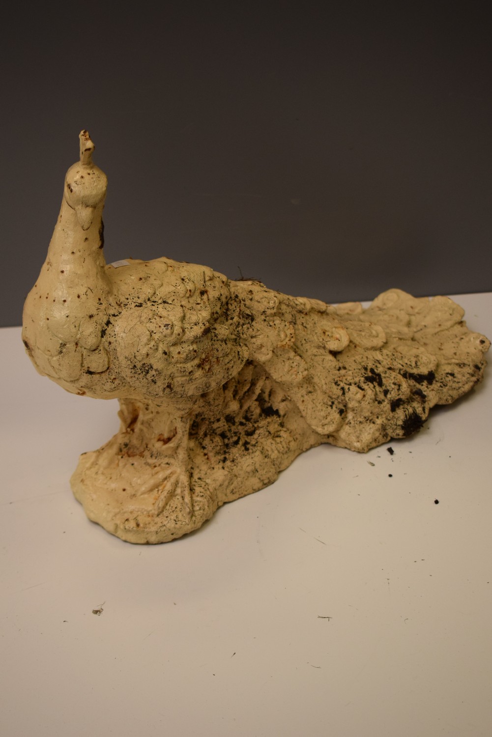 A CAST IRON PEACOCK (A/F) (H31 CM) (LEONARD JOEL DELIVERY SIZE: SMALL)