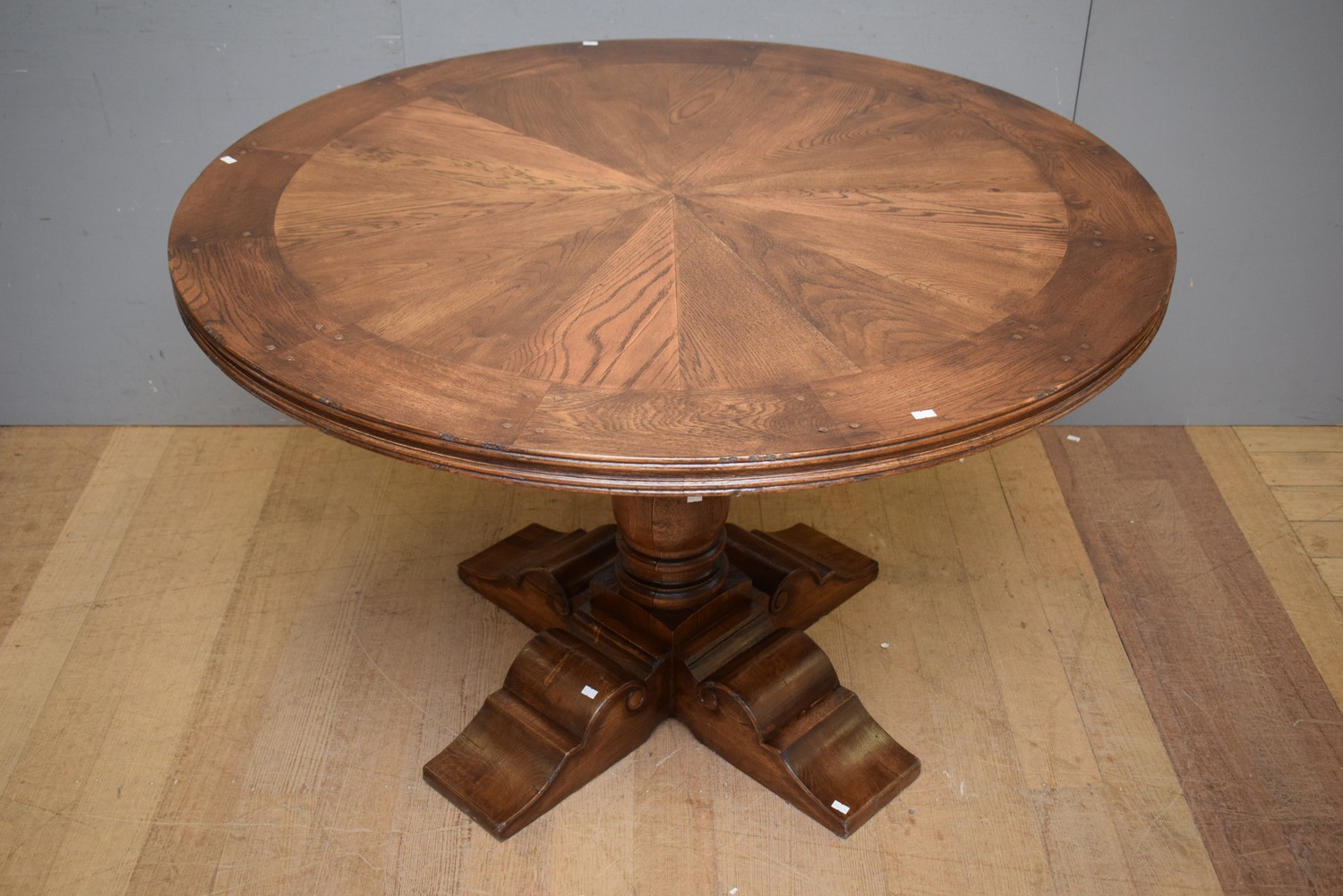 A FRENCH STYLE OAK PEDESTAL DINING TABLE (77H x 120W CM) (PLEASE NOTE THIS HEAVY ITEM MUST BE REMOVED BY CARRIERS AT THE CUSTOMER'S EXPENSE. LEONARD JOEL STAFF CANNOT ASSIST CARRYING THIS ITEM) (X-LARGE ITEM)