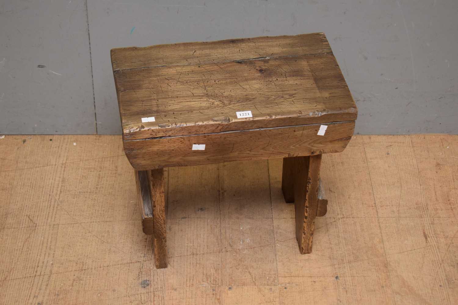 A FRENCH OAK FARMHOUSE STYLE MILKING STOOL (37H x 1W x 25D CM) (LEONARD JOEL DELIVERY SIZE: SMALL)