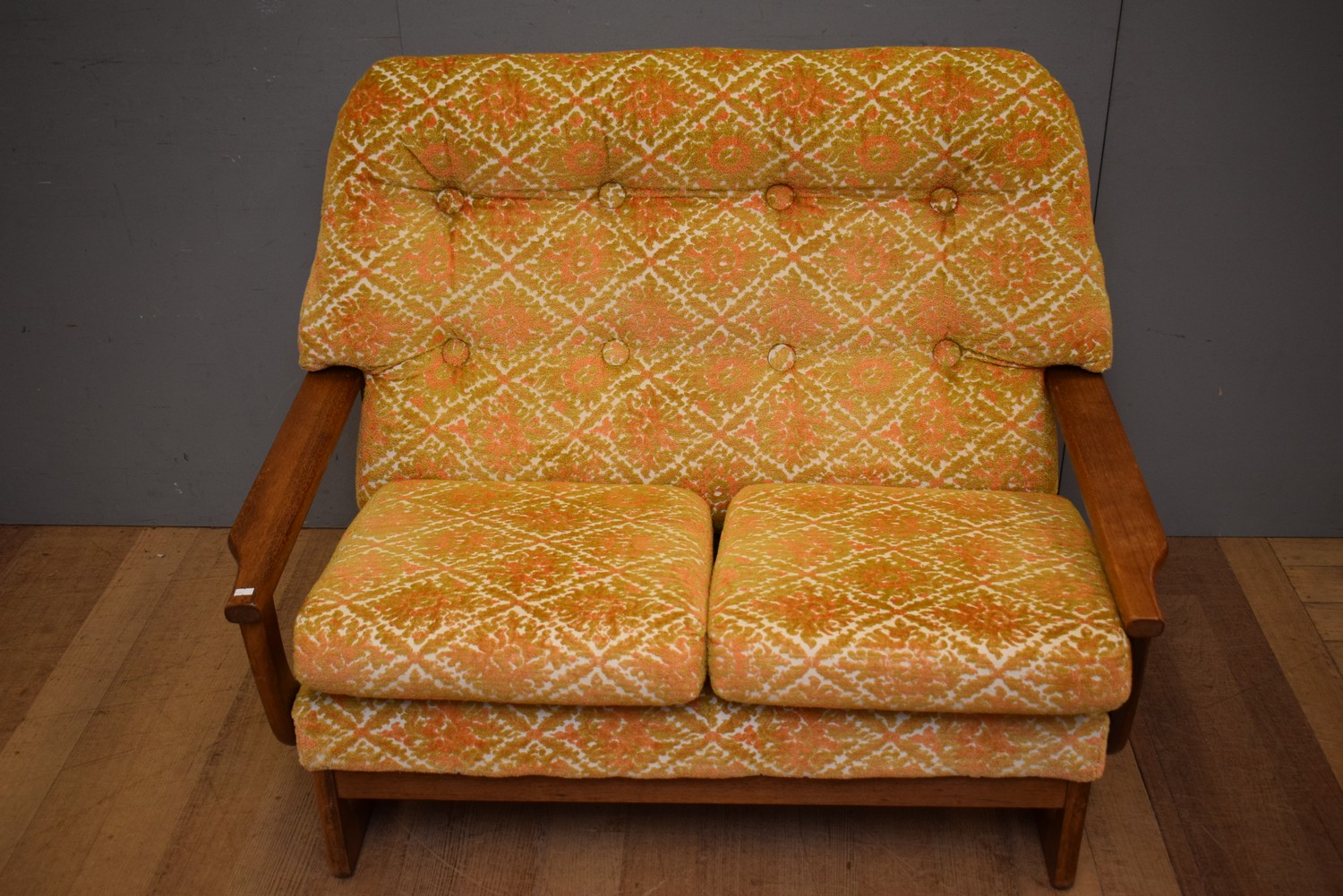 A MID-CENTURY TWO SEATER COUCH (H 92 X 120W X 93D) (PLEASE NOTE THIS HEAVY ITEM MUST BE REMOVED BY CARRIERS AT THE CUSTOMER'S EXPENSE. LEONARD JOEL STAFF CANNOT ASSIST CARRYING THIS ITEM) (X-LARGE ITEM)