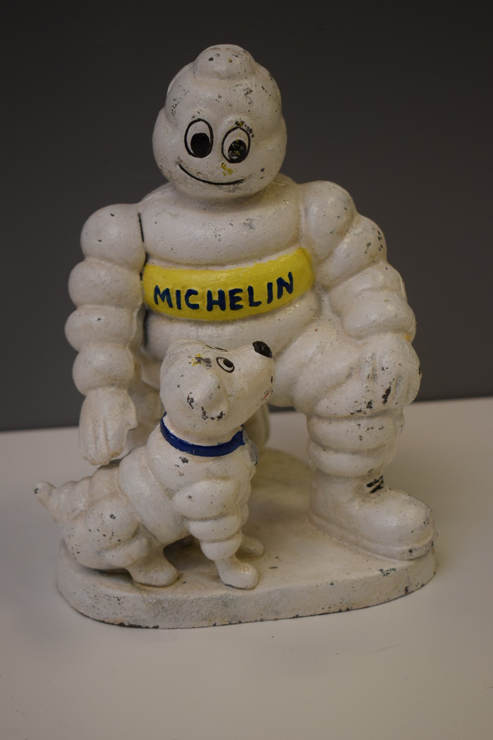A METAL MICHELIN MAN FIGURE WITH MICHELIN DOG (H21 CM) (LEONARD JOEL DELIVERY SIZE: SMALL)