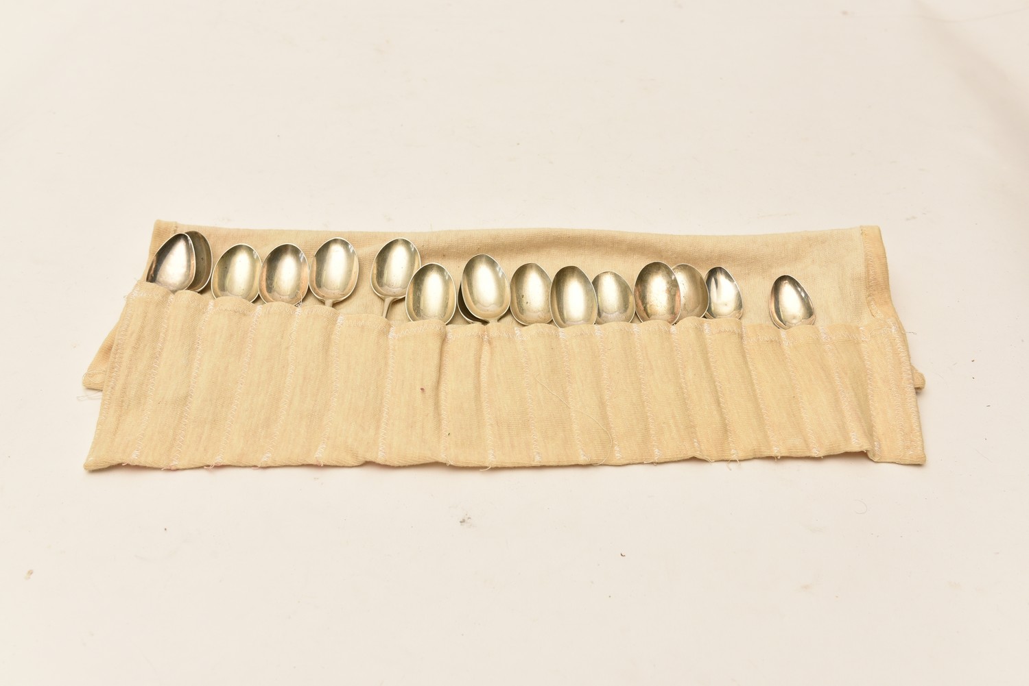 SIXTEEN STERLING SILVER TEASPOONS, VARIOUS DATES AND MAKERS (13 CM W), LEONARD JOEL LOCAL DELIVERY SIZE: SMALL