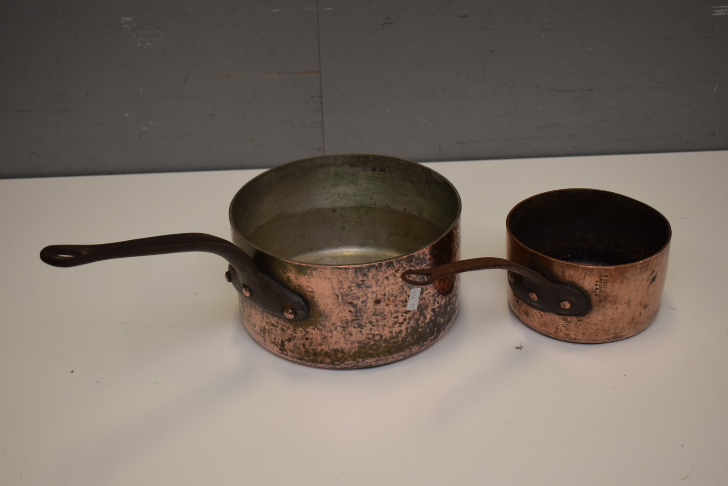 TWO HEAVY FRENCH COPPER SAUCEPANS (44 CM WIDE) (LEONARD JOEL DELIVERY SIZE: SMALL)