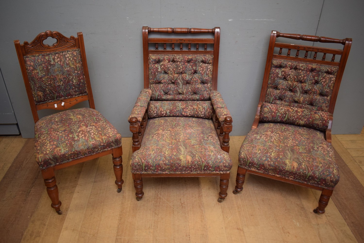 A SET OF THREE ANIMAL PRINT UPHOLSTERED CHAIRS (LARGEST 95H x 62W x 77D CM) (LEONARD JOEL DELIVERY SIZE: LARGE)