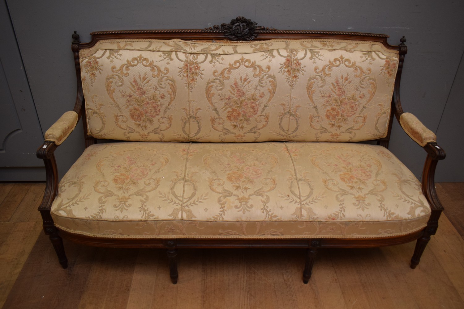 A LOUIS XVI STYLE THREE SEATER SOFA (A/F) (100H x 175W x 73D CM) (PLEASE NOTE THIS HEAVY ITEM MUST BE REMOVED BY CARRIERS AT THE CUSTOMER'S EXPENSE. LEONARD JOEL STAFF CANNOT ASSIST CARRYING THIS ITEM) (X-LARGE ITEM)