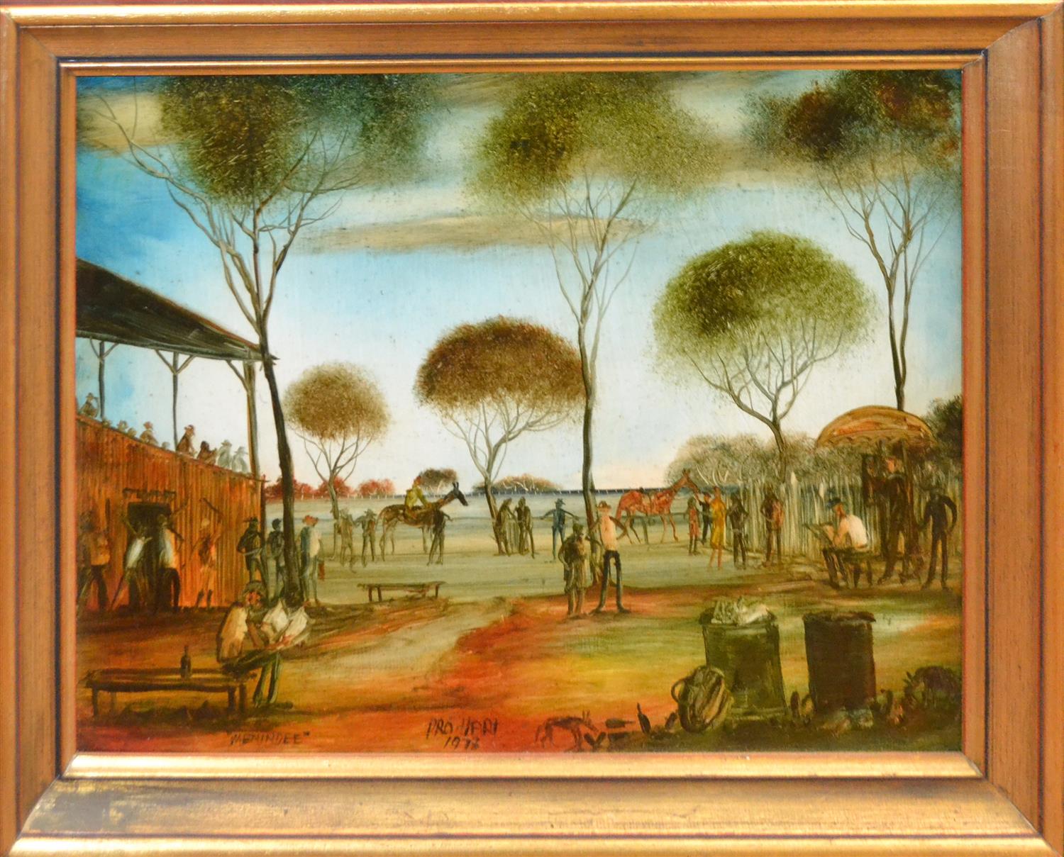 PRO HART, MERINDEE, OIL ON BOARD, 35 X 45CM, FRAME SIZE: 43 X 52CM, LEONARD JOEL DELIVERY SIZE: SMALL