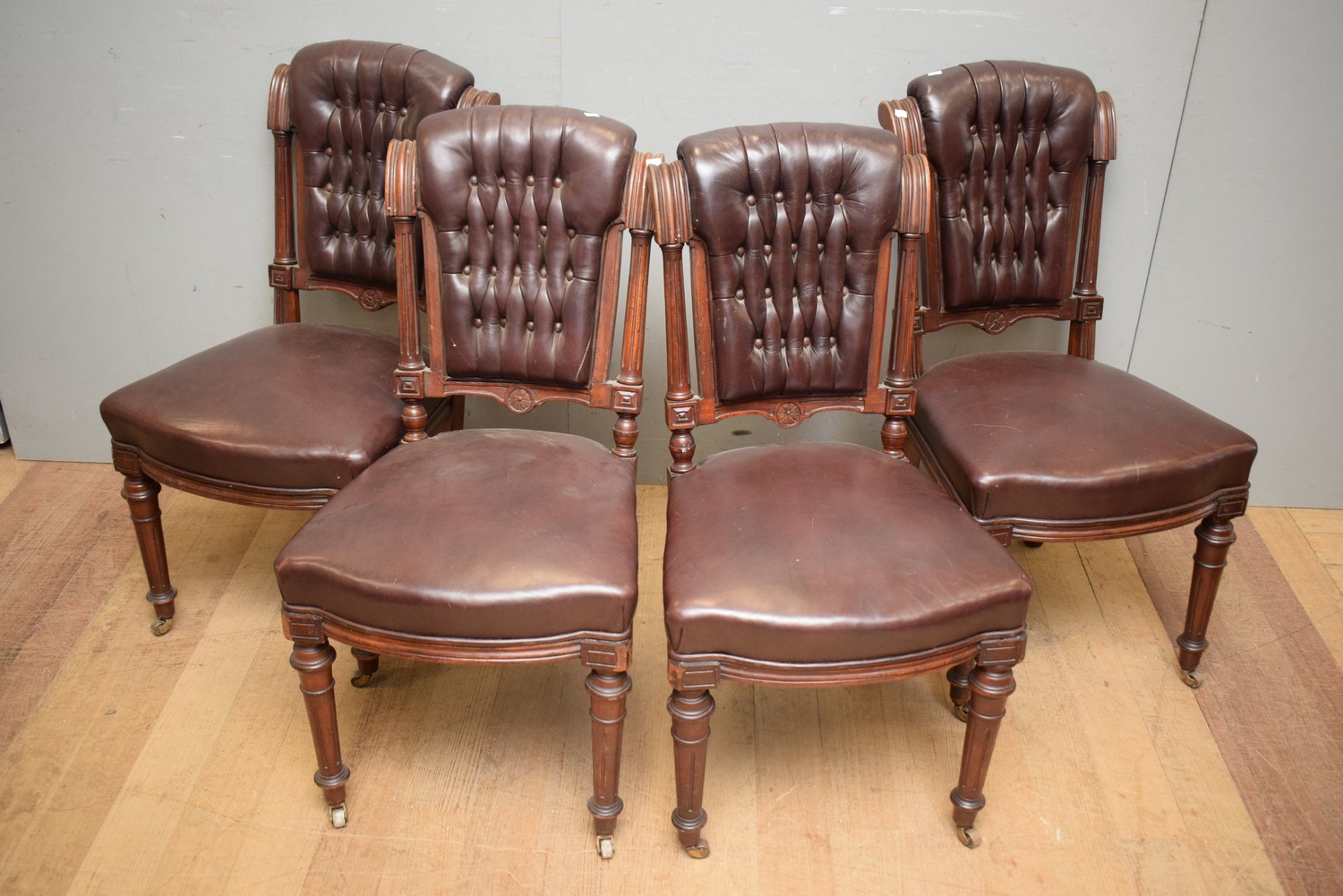 A SET OF FOUR BUTTONBACK LEATHER DINING CHAIRS (A/F) (89H x 49W x 62D CM) (LEONARD JOEL DELIVERY SIZE: LARGE)