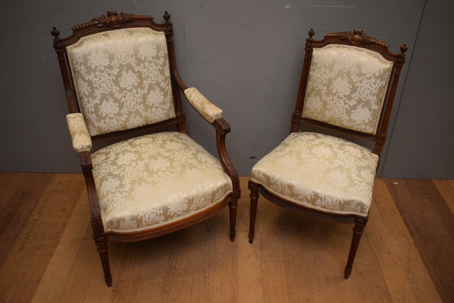 TWO DECORATIVELY CARVED SITTING CHAIRS (99H x 66W x 66D CM) (LEONARD JOEL DELIVERY SIZE: MEDIUM)