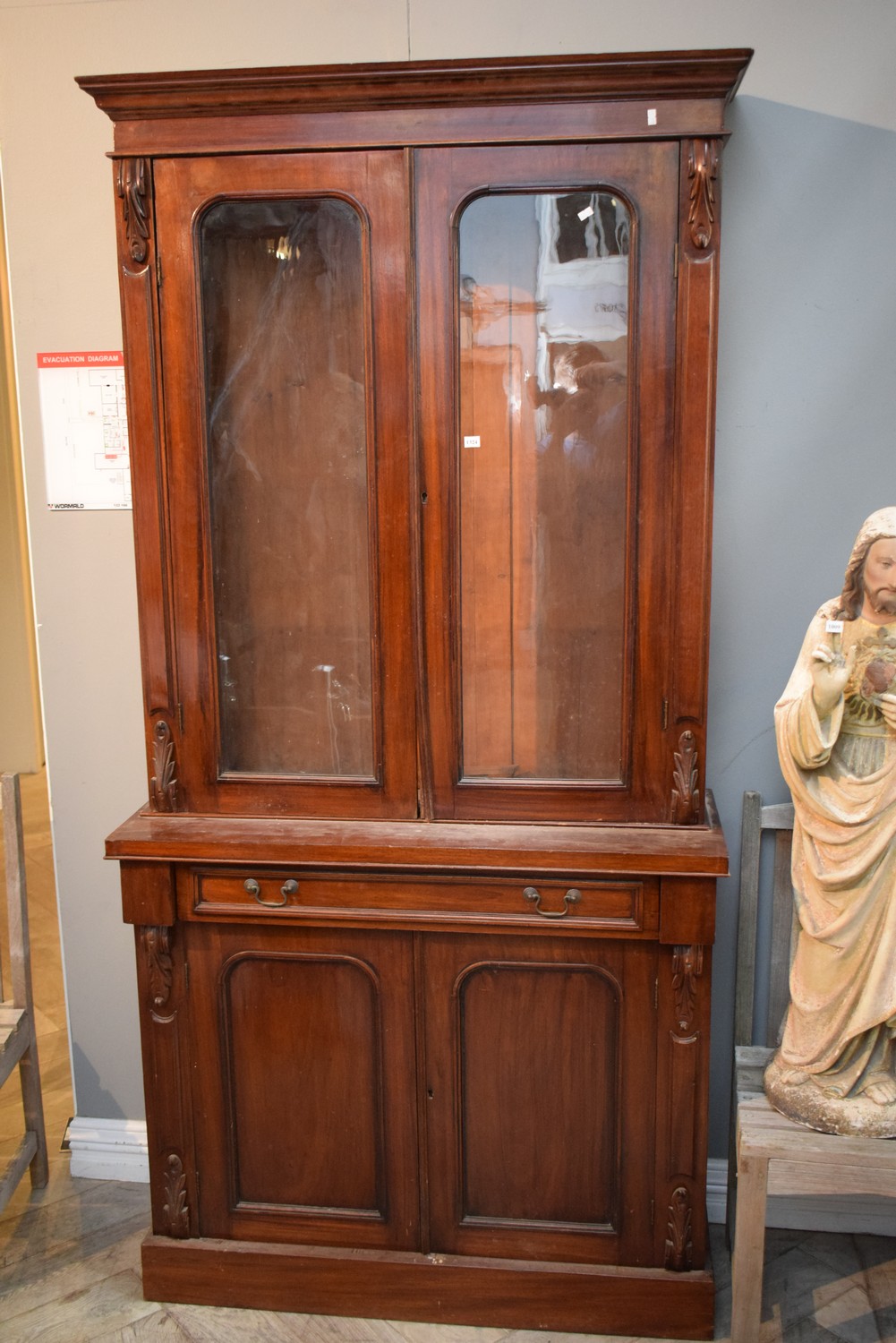 A VICTORIAN GLASS FRONTED BOOKCASE - NO SHELVES (A/F) (H213 X W105 X D40 CM) (PLEASE NOTE THIS HEAVY ITEM MUST BE REMOVED BY CARRIERS AT THE CUSTOMER'S EXPENSE. LEONARD JOEL STAFF CANNOT ASSIST CARRYING THIS ITEM) (X-LARGE ITEM)