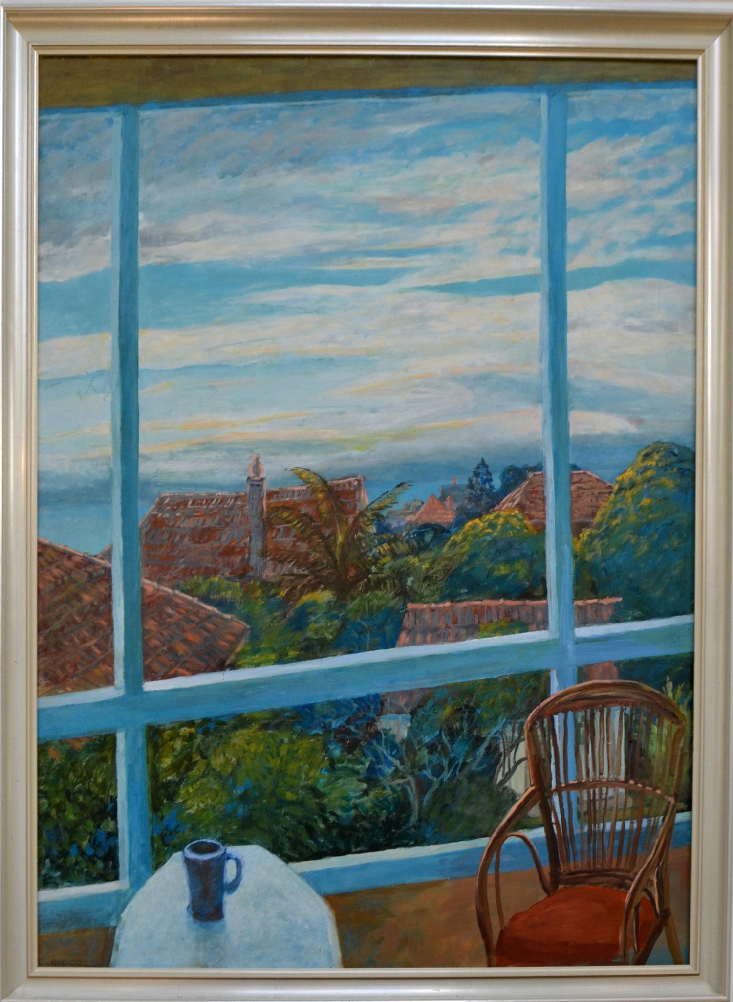 BRIAN KEWLEY, VIEW FROM THE WINDOW, OIL ON BOARD, 135 X 103CM, FRAME SIZE: 148 X 116CM, CONDITION: VERY GOOD, LEONARD JOEL DELIVERY SIZE: LARGE
