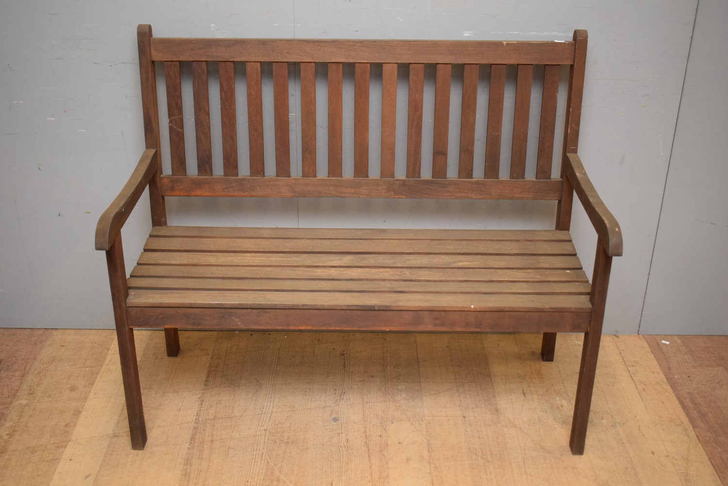 A TEAK TWO SEATER BENCH (102H x 120W x 57D CM) (LEONARD JOEL DELIVERY SIZE: LARGE)