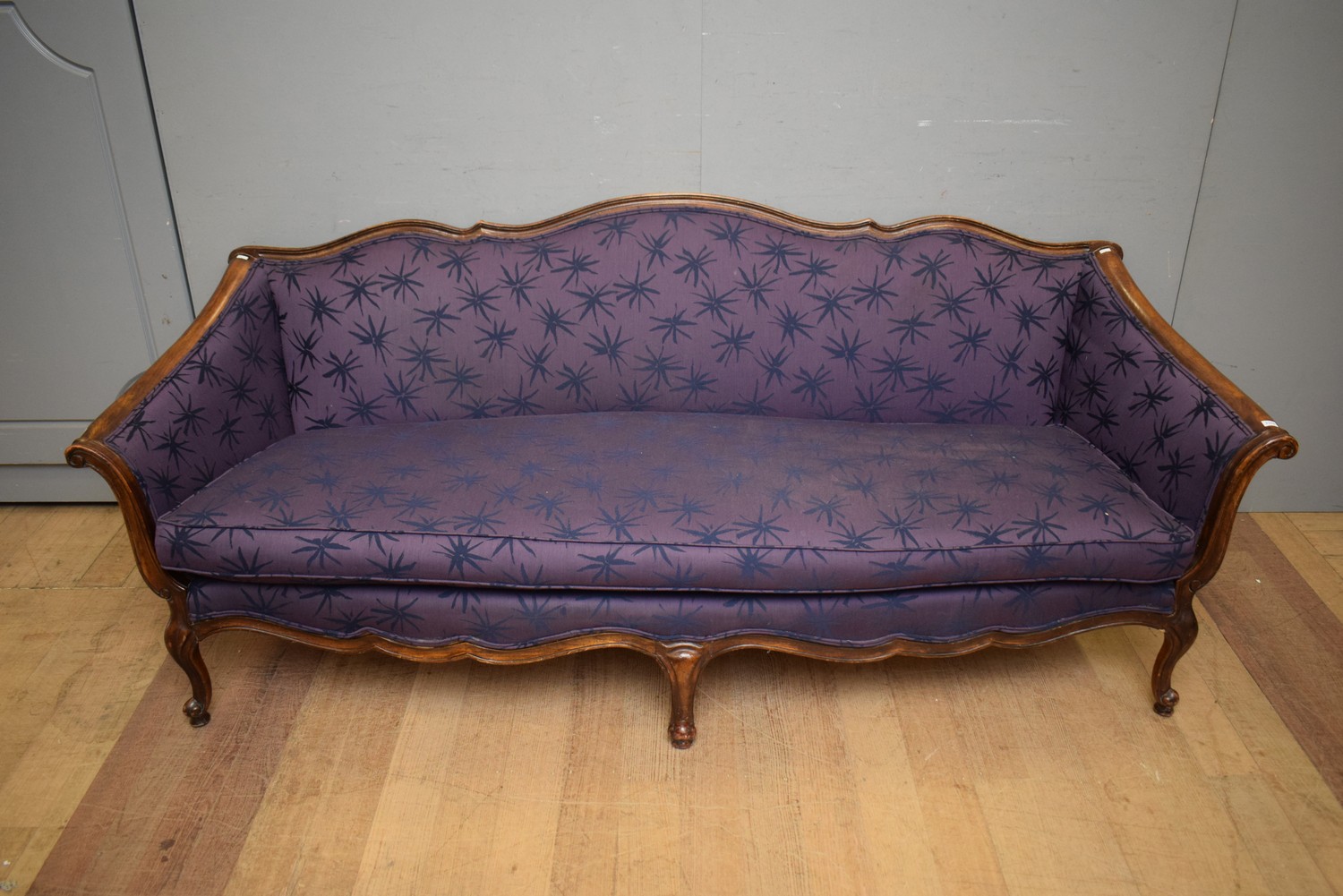 A VICTORIAN STYLE MID-CENTURY UPHOLSTERED SETTEE (83H x 216W x 87D CM) (PLEASE NOTE THIS HEAVY ITEM MUST BE REMOVED BY CARRIERS AT THE CUSTOMER'S EXPENSE. LEONARD JOEL STAFF CANNOT ASSIST CARRYING THIS ITEM) (X-LARGE ITEM)