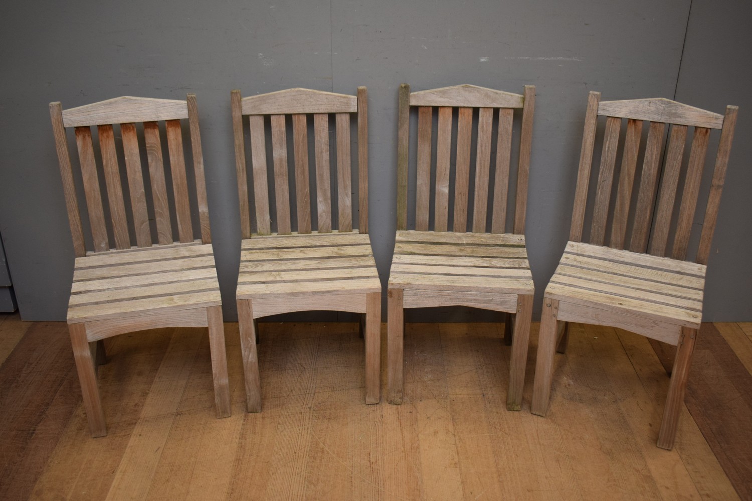 TWO PAIRS OF TEAK OUTDOOR CHAIRS (A/F) (92H x 42W x 42D CM) (LEONARD JOEL DELIVERY SIZE: LARGE)