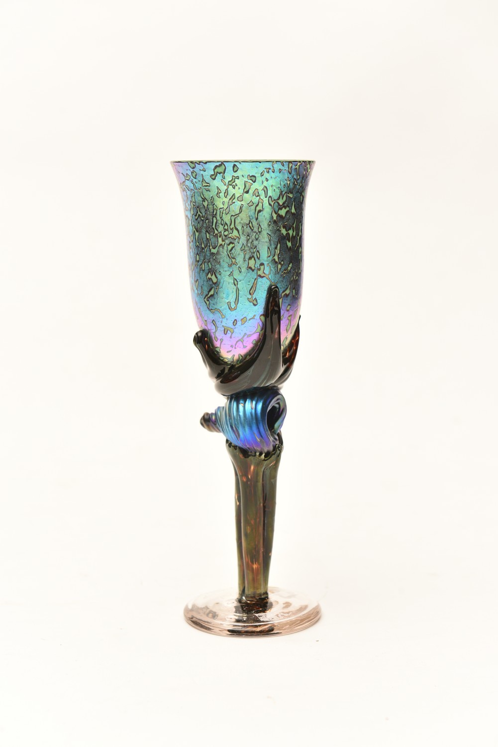 A COLIN HEANEY IRRIDESCENT SEA SHELL SCULPTED GLASS, SIGNED AND DATED 1992 (22 CM H), LEONARD JOEL LOCAL DELIVERY SIZE: SMALL