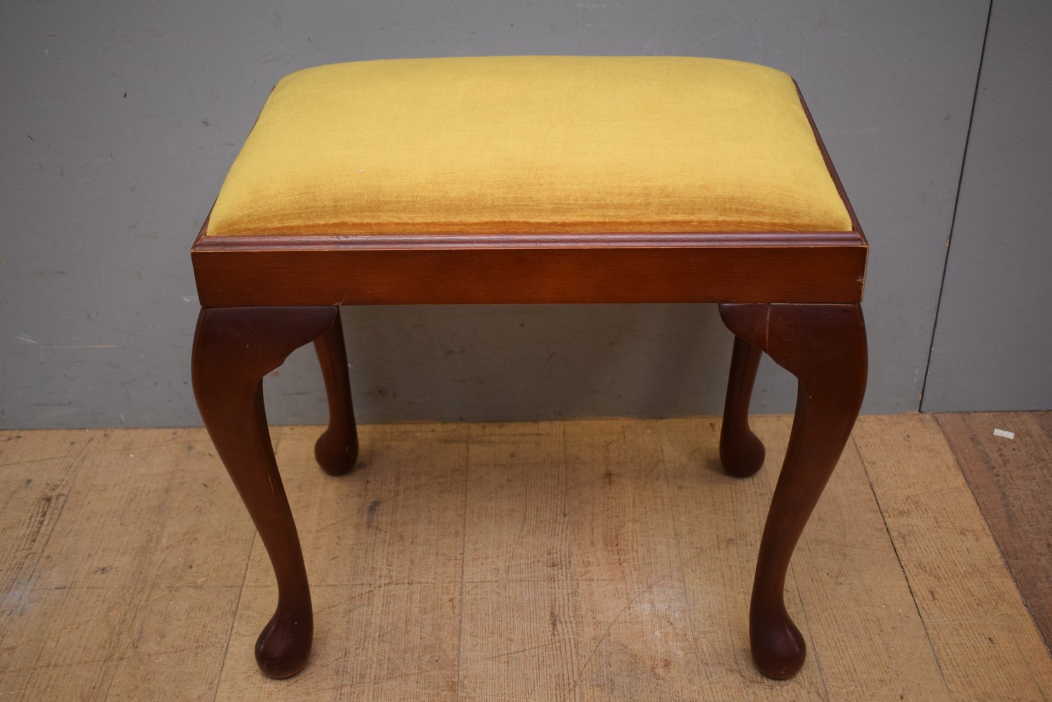 A VELOUR UPHOLSTERED PIANO STOOL (H47CM X W51CM X D36CM) (LEONARD JOEL DELIVERY SIZE: SMALL)