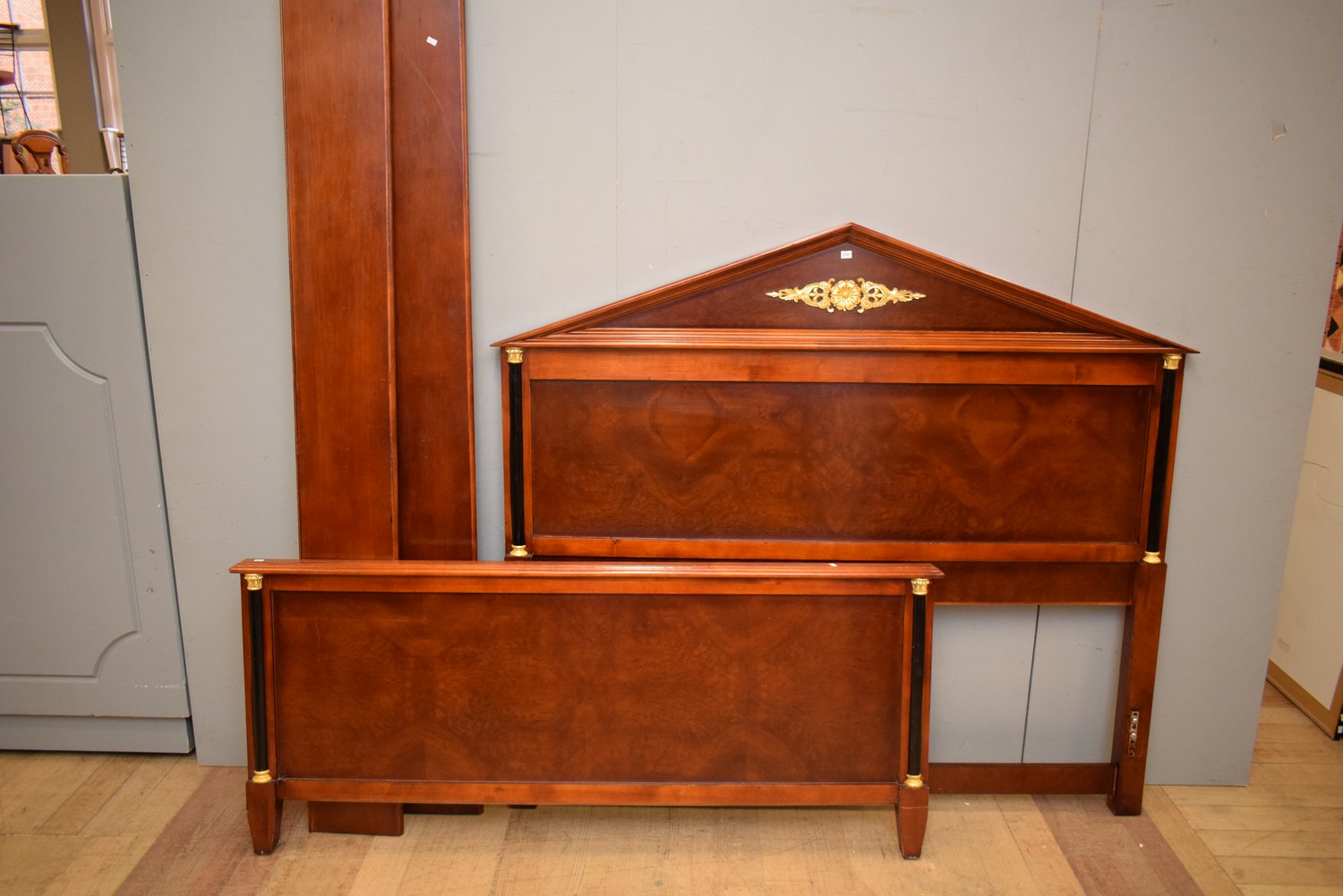 A TIMBER BED FRAME WITH GILT DETAILING (BEDHEAD 152H x 167W CM) (LEONARD JOEL DELIVERY SIZE: LARGE)