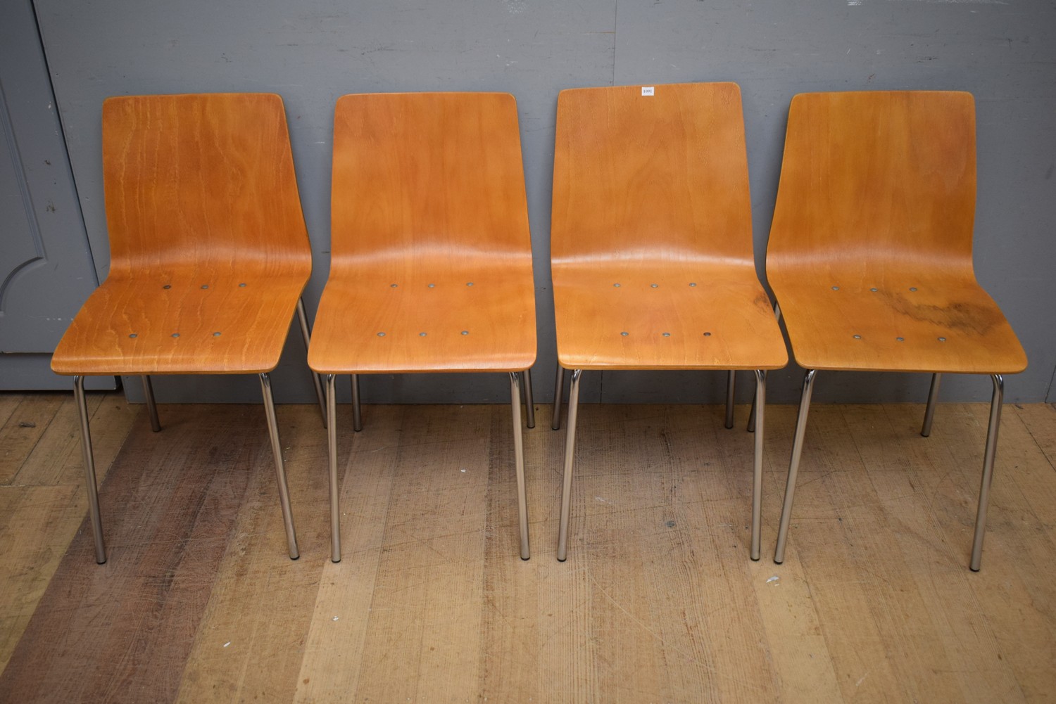 A SET OF FOUR PLYWOOD DINING CHAIRS (A/F) (81H x 44W x 55D CM) (LEONARD JOEL DELIVERY SIZE: MEDIUM)