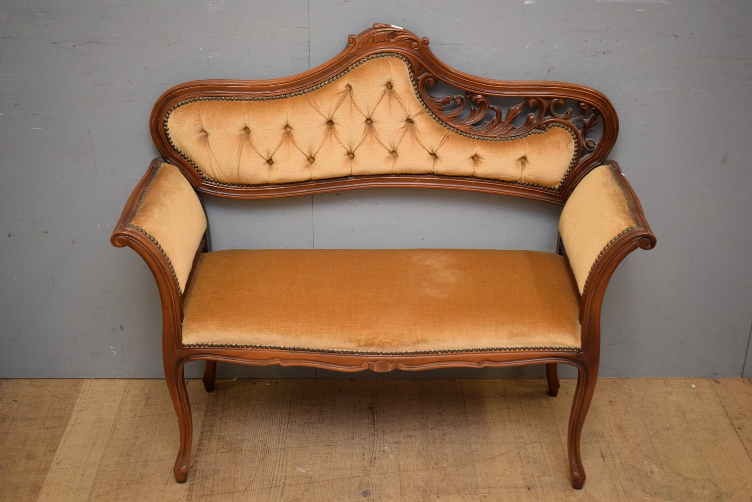 A VELOUR UPHOLSTERED HALL SEAT (94H x 107W x 40D CM) (LEONARD JOEL DELIVERY SIZE: MEDIUM)