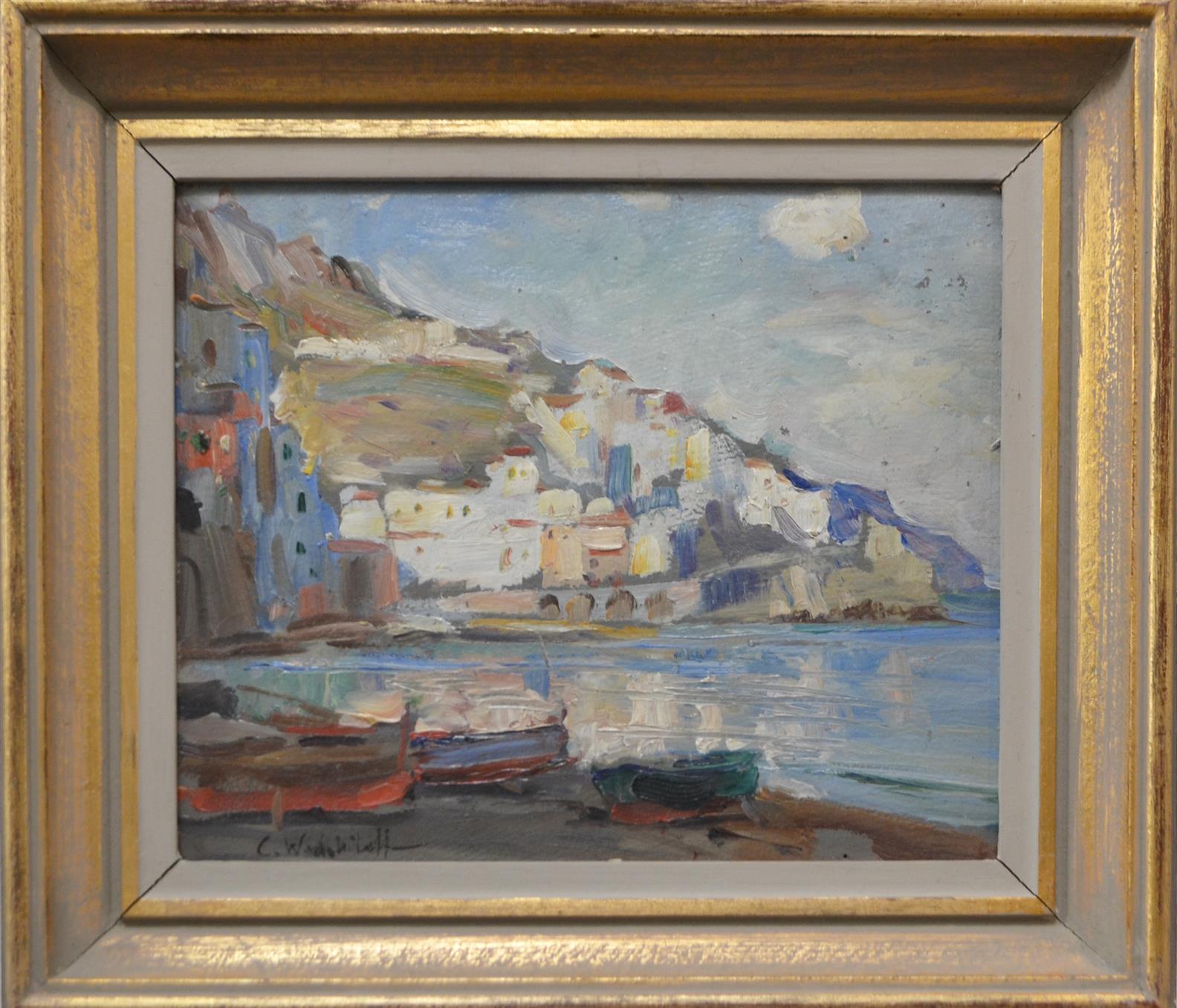 C. WESTCHILOFF, SEASIDE, OIL ON BOARD, 21 X 26CM, FRAME SIZE: 32 X 36CM, LEONARD JOEL DELIVERY SIZE: SMALL