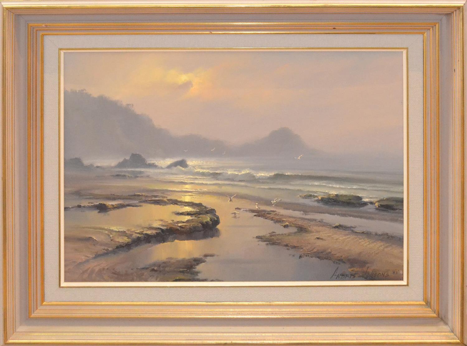 ANDRIS JANSONS, MISTY SHORES 1983, OIL ON BOARD, 45 X 60CM, FRAME SIZE: 66 X 82CM, LEONARD JOEL DELIVERY SIZE: MEDIUM