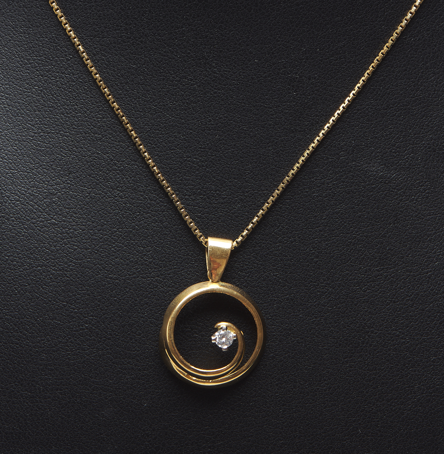 A DIAMOND PENDANT WITH CHAIN IN 9CT GOLD, LENGTH OF PENDANT 2.4CM, LENGTH OF CHAIN 41.5CM, 5.2GMS