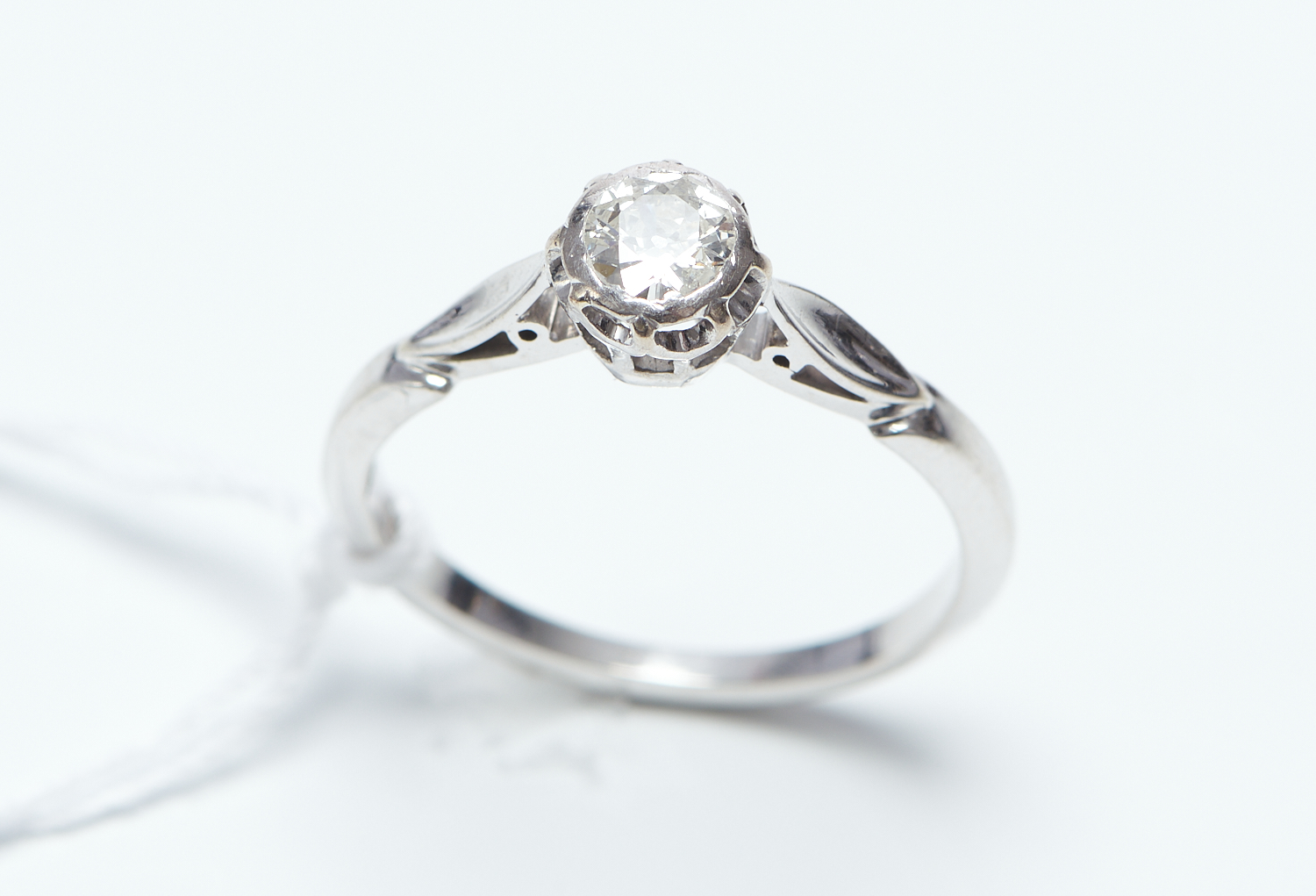 A VINTAGE OLD EUROPEAN CUT DIAMOND RING IN 18CT GOLD AND PLATINUM, SIZE M, 2.4GMS