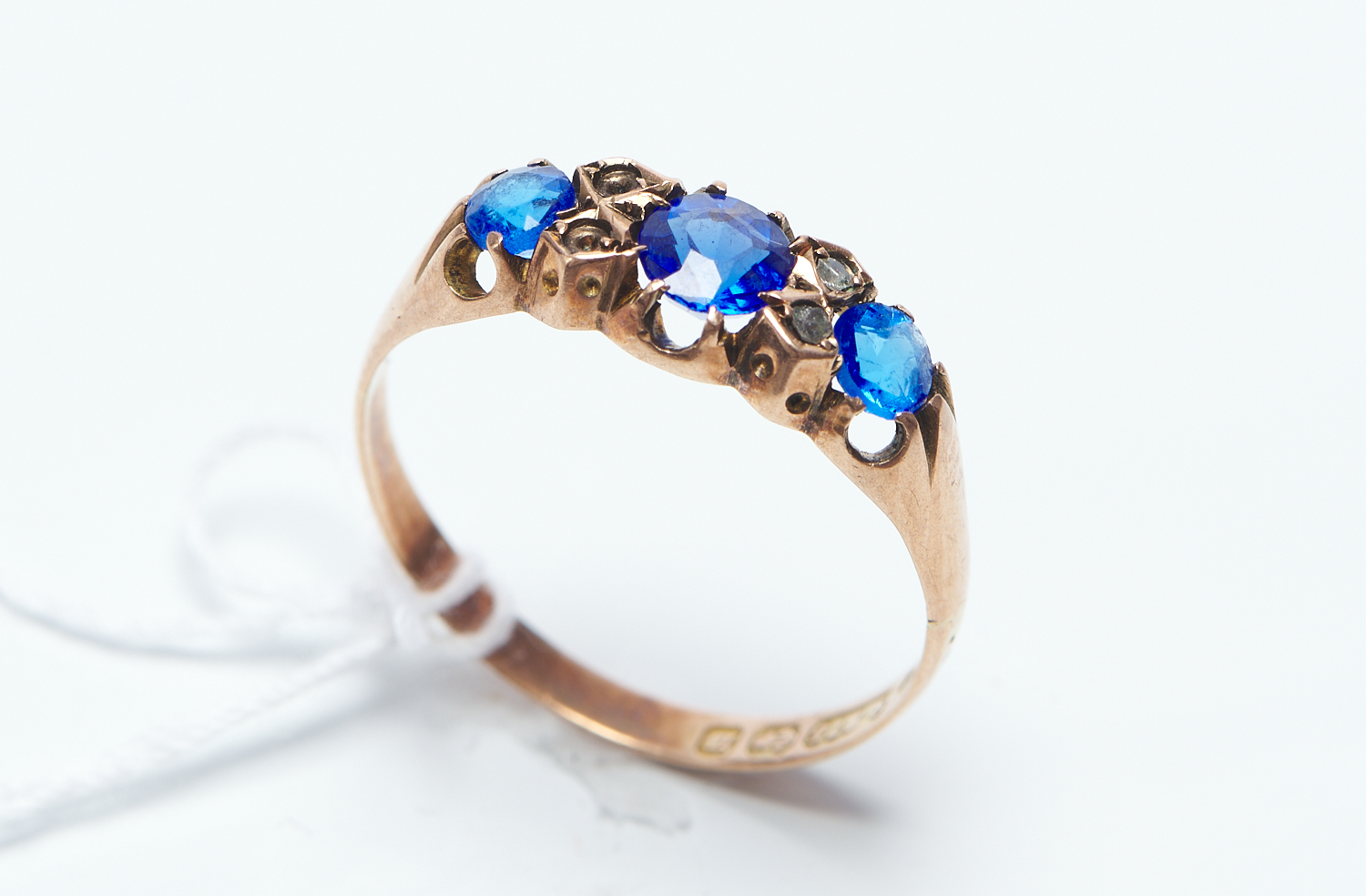 A GARNET TOP SAPPHIRE AND ROSE CUT DIAMOND RING IN 9CT GOLD, HALLMARKED BIRMINGHAM 1896, SIZE 0, 1.4GMS