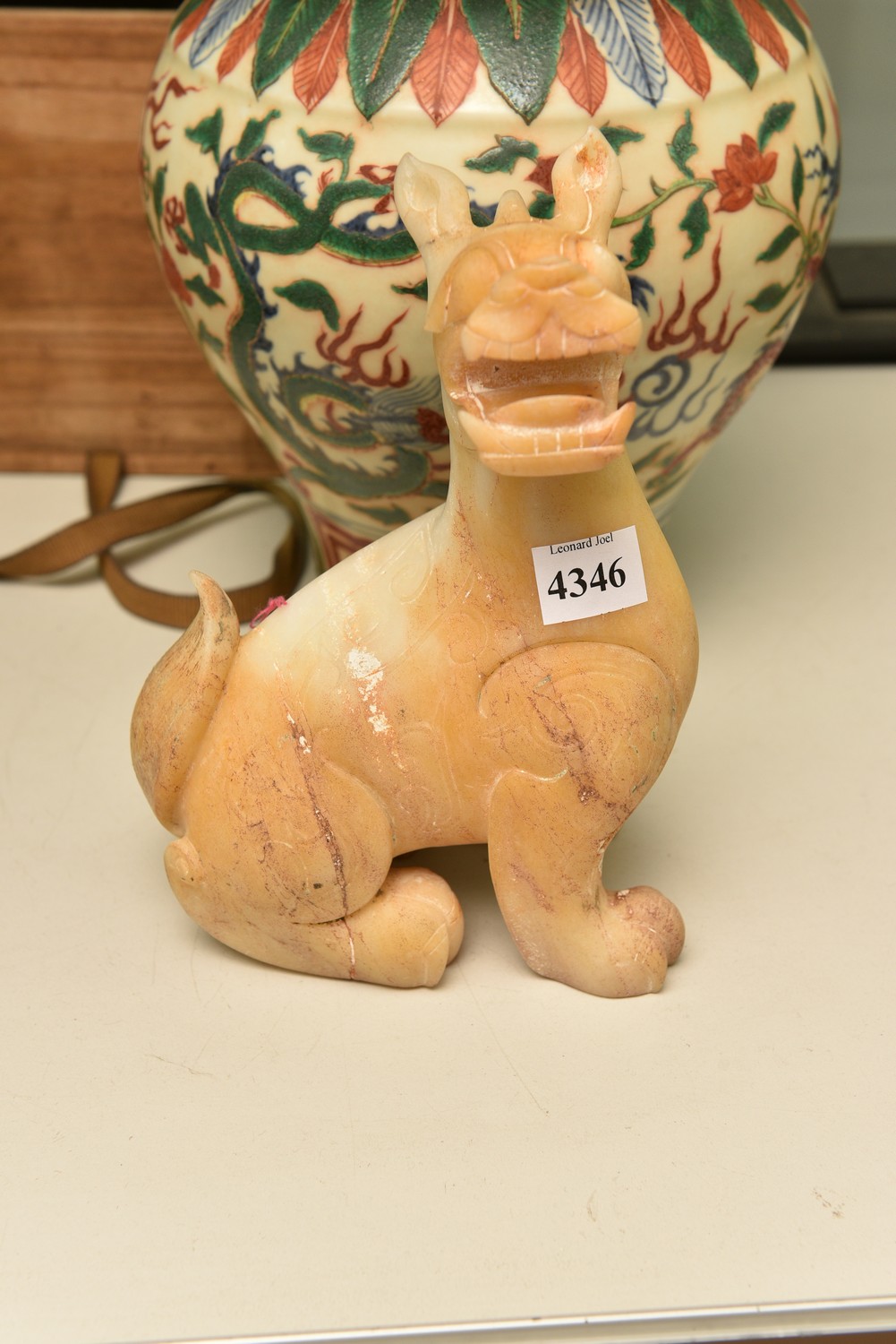 A CARVED STONE QILIN, LEONARD JOEL LOCAL DELIVERY SIZE: SMALL (19 CM H)